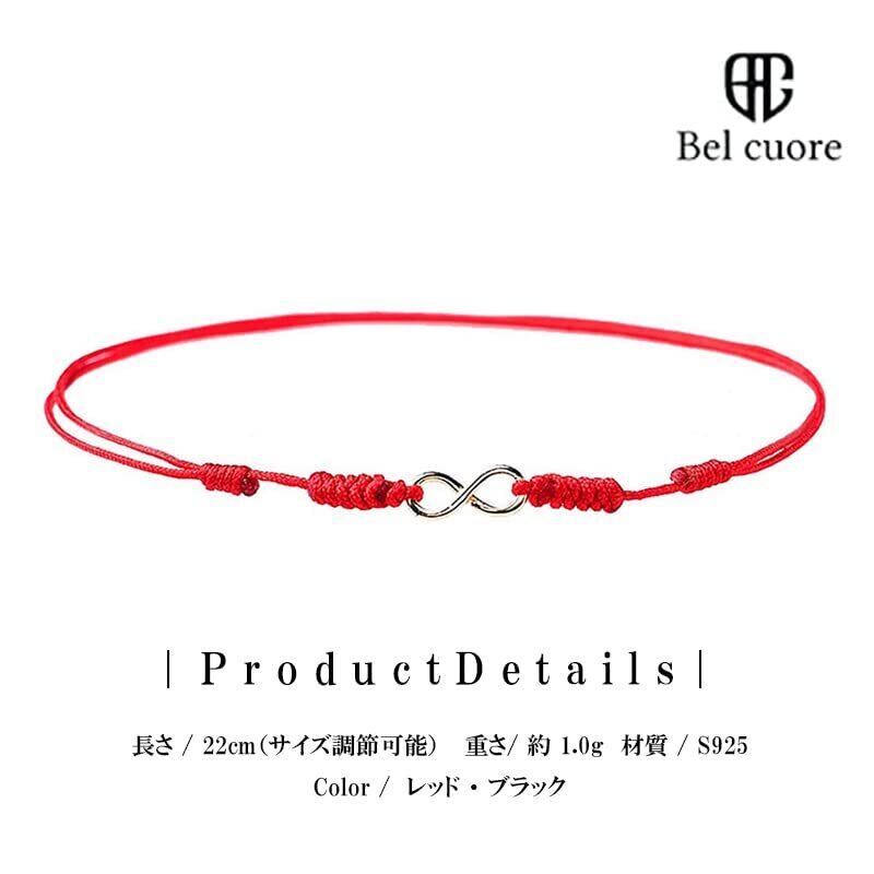 [Bel cuore] インフィニティ アンクレット シンプル 紐 メンズ アクセサリー 赤 黒 ブレスレッド 腕輪 ギフトボックス入り シンプル おしゃれ