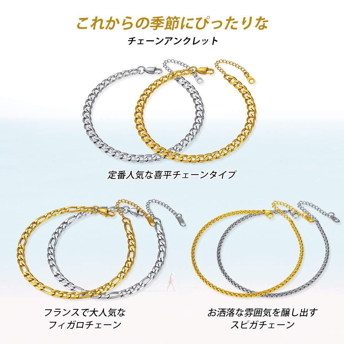 【人気の定番アンクレット4種】洗練されたチェーンアンクレットが足元を美しく彩ります。全4タイプ:①定番の喜平チェーン、②フランスで大人気なフィガロチェーン、③お洒落なスピガチェーン、④繊細なスネークチェーン。シンプルながらもおしゃれで、男性・女性を問わずお楽しみいただけます。
