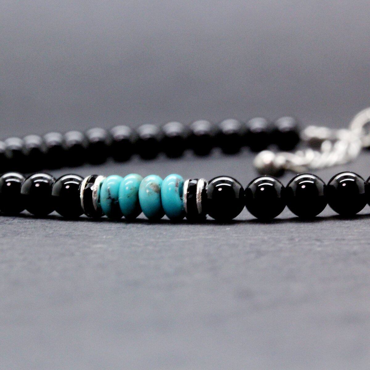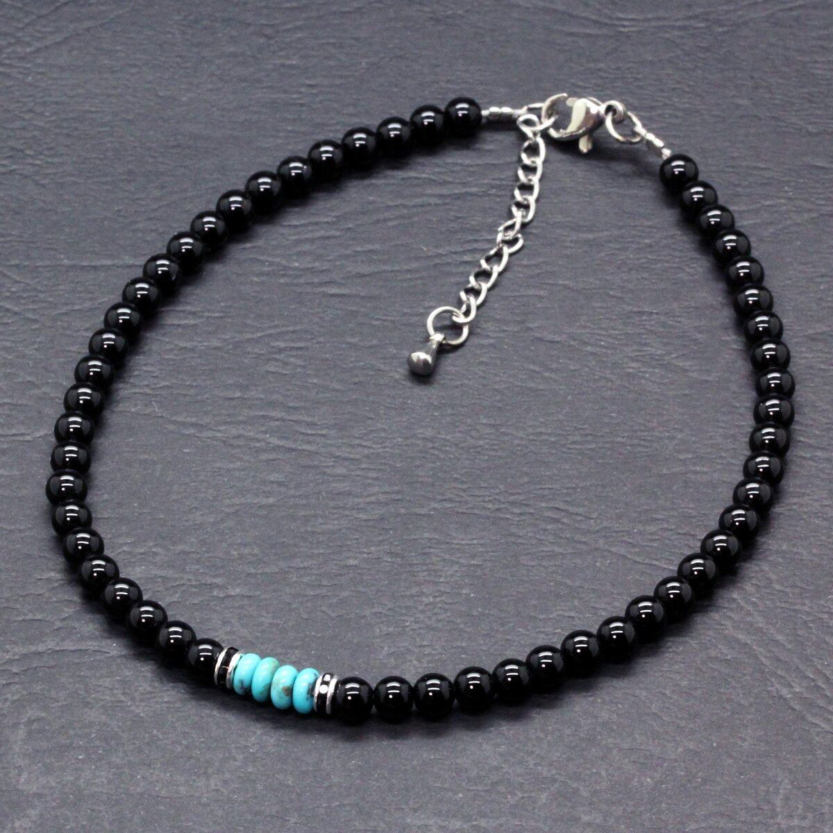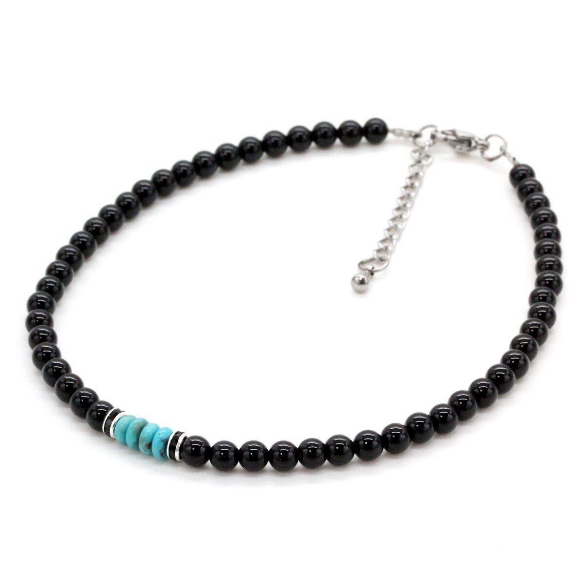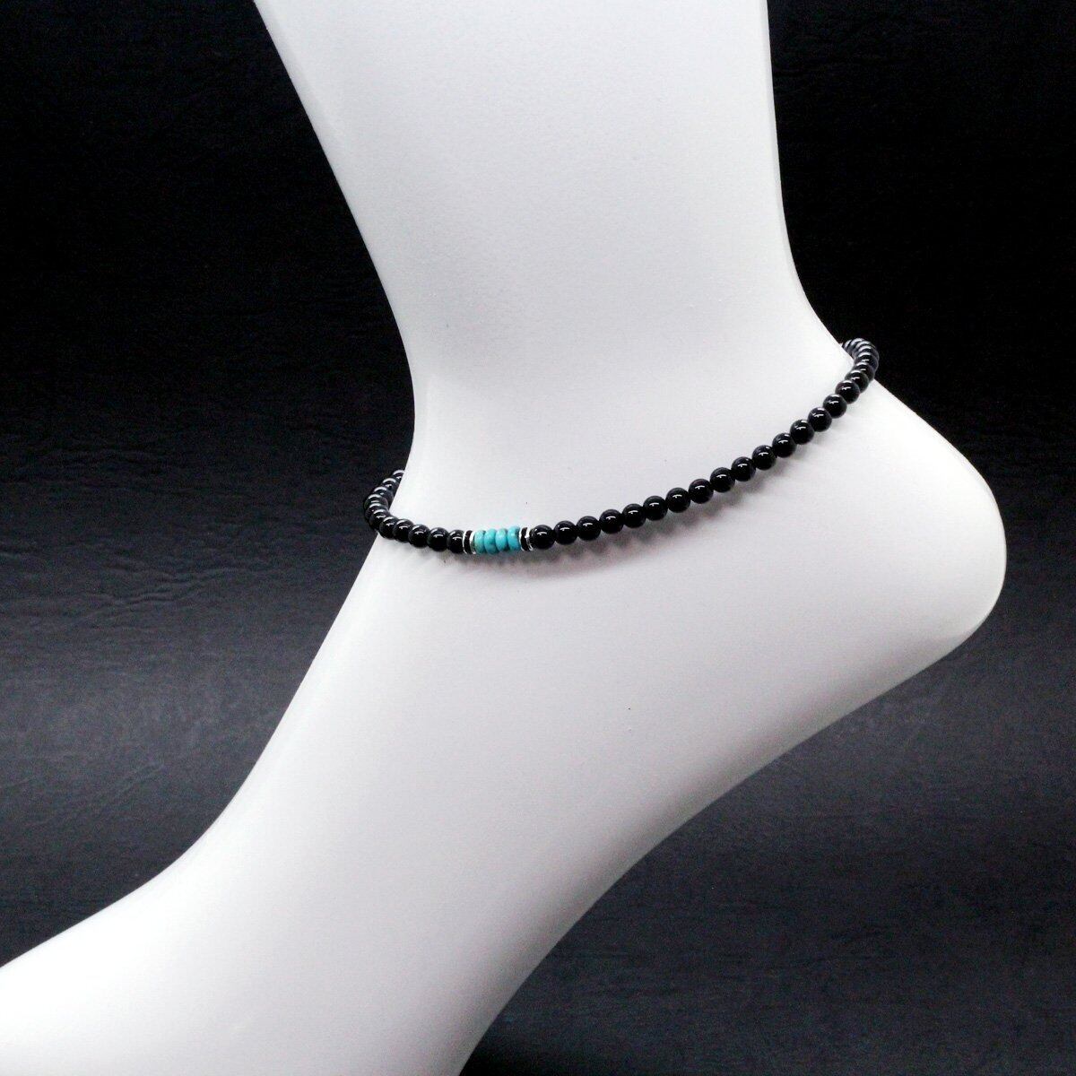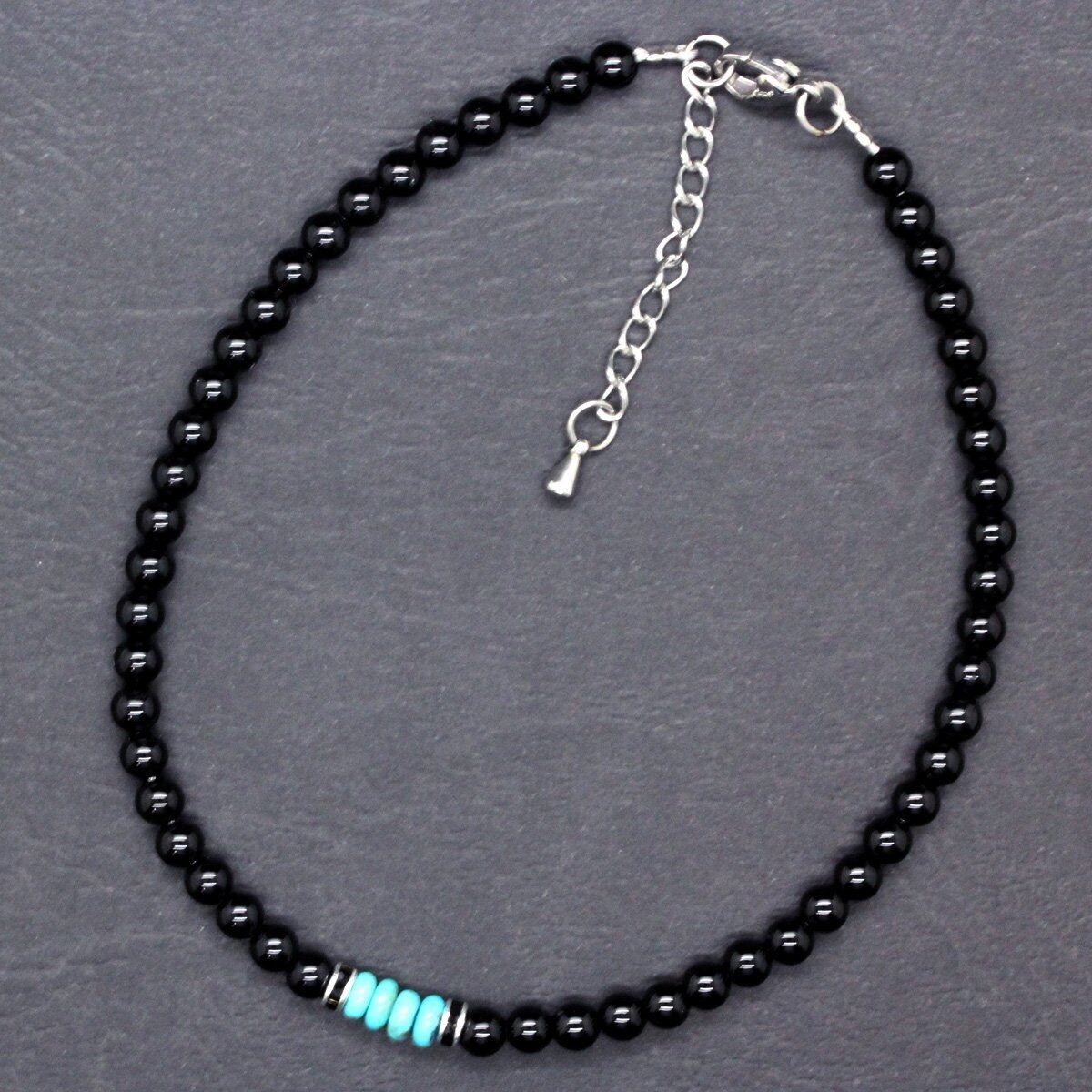 [石輝] オニキス ターコイズ アンクレット 4mm メンズ 天然石 [a508_3]
