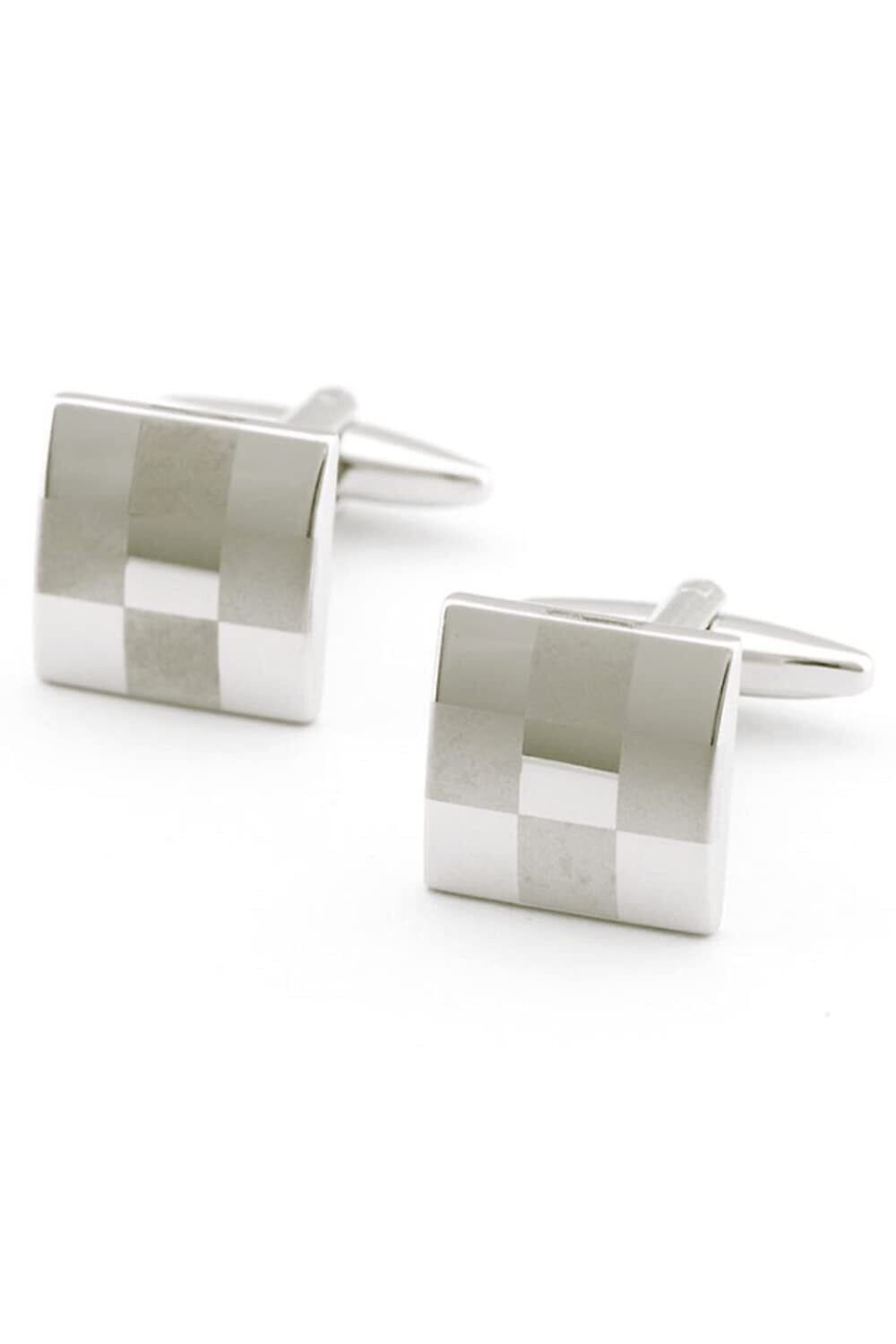 【新春セール】wumio カフス ブロックチェック柄 カフスボタン カフリンクス シルバーチェック シャツ ワイシャツ スーツ 就職 結婚式 子ども モーニング メンズ ブロック柄 シンプル | 無意味ステッカー
