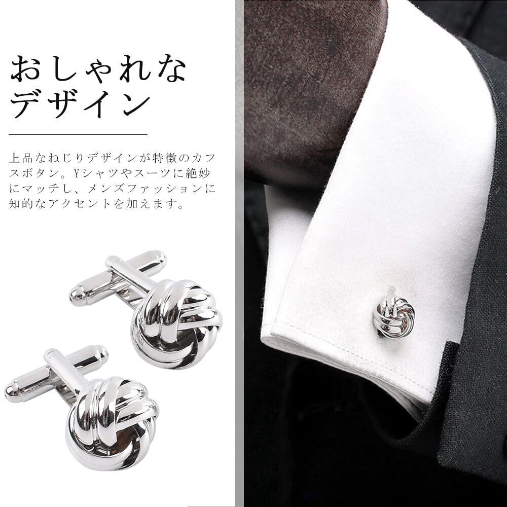 【おしゃれなデザイン】上品なねじりデザインが特徴のカフスボタン。Yシャツやスーツに絶妙にマッチし、メンズファッションに知的なアクセントを加えます。