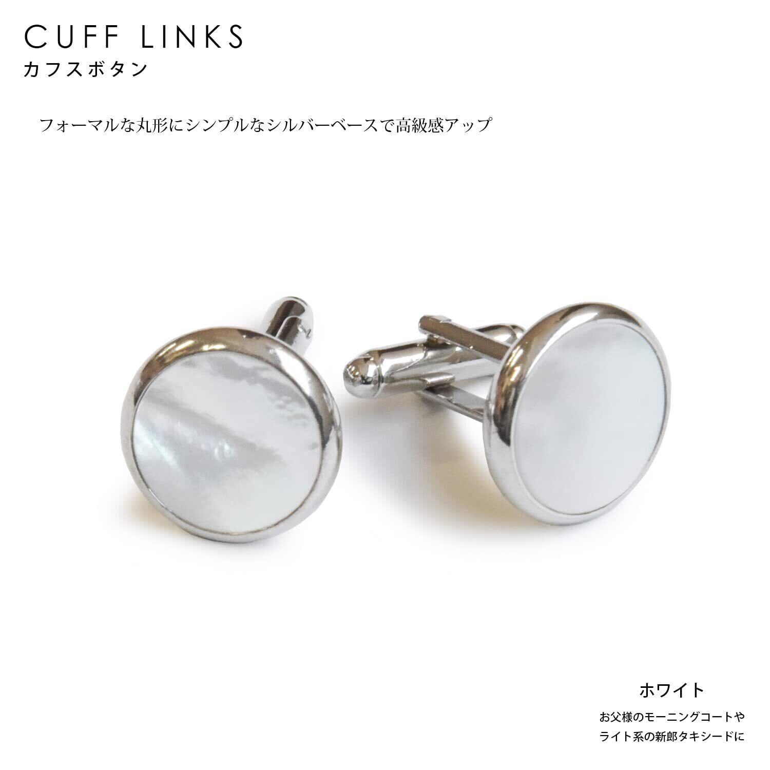 カフスボタンは天然の白蝶貝を使用した高級フォーマルカフスです。お父様のモーニングコートの着用はもちろん、ディレクターズスーツなどお昼間のフォーマルシーンでお勧めのスタイルです。