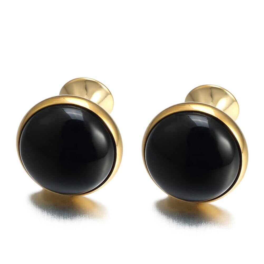 Rockyu カフス シルバー ブラック 虎目 タイガーズアイカフス ラウンドカフス ビジネス 上品 紳士 スーツ ステンレス アンティーク風 カフリンクス