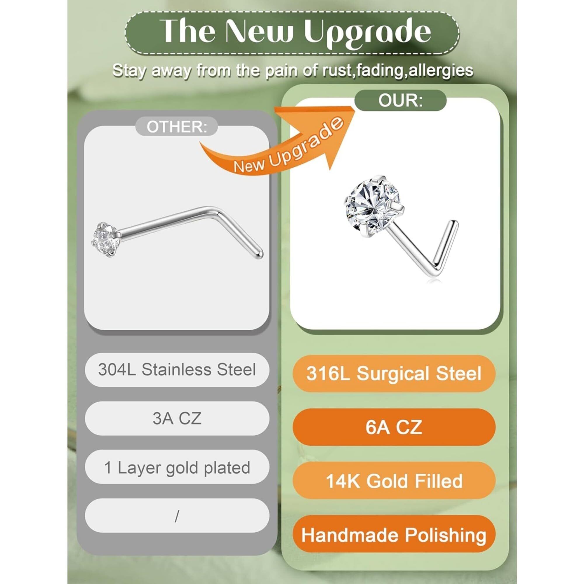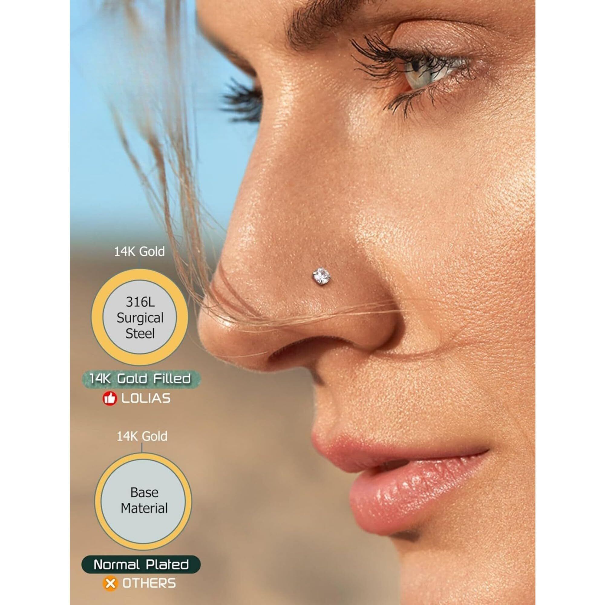 【特価商品】[Jstyle] 14K 鼻 ピアス セット ボディピアス 人気 ジルコン ステンレス ゴールド プラチナ L字型 S字型 4-8点 アレルギー対応 女性 男性 日常 誕生日 プレゼント ユニセックス 鼻ピ | 無意味ステッカー