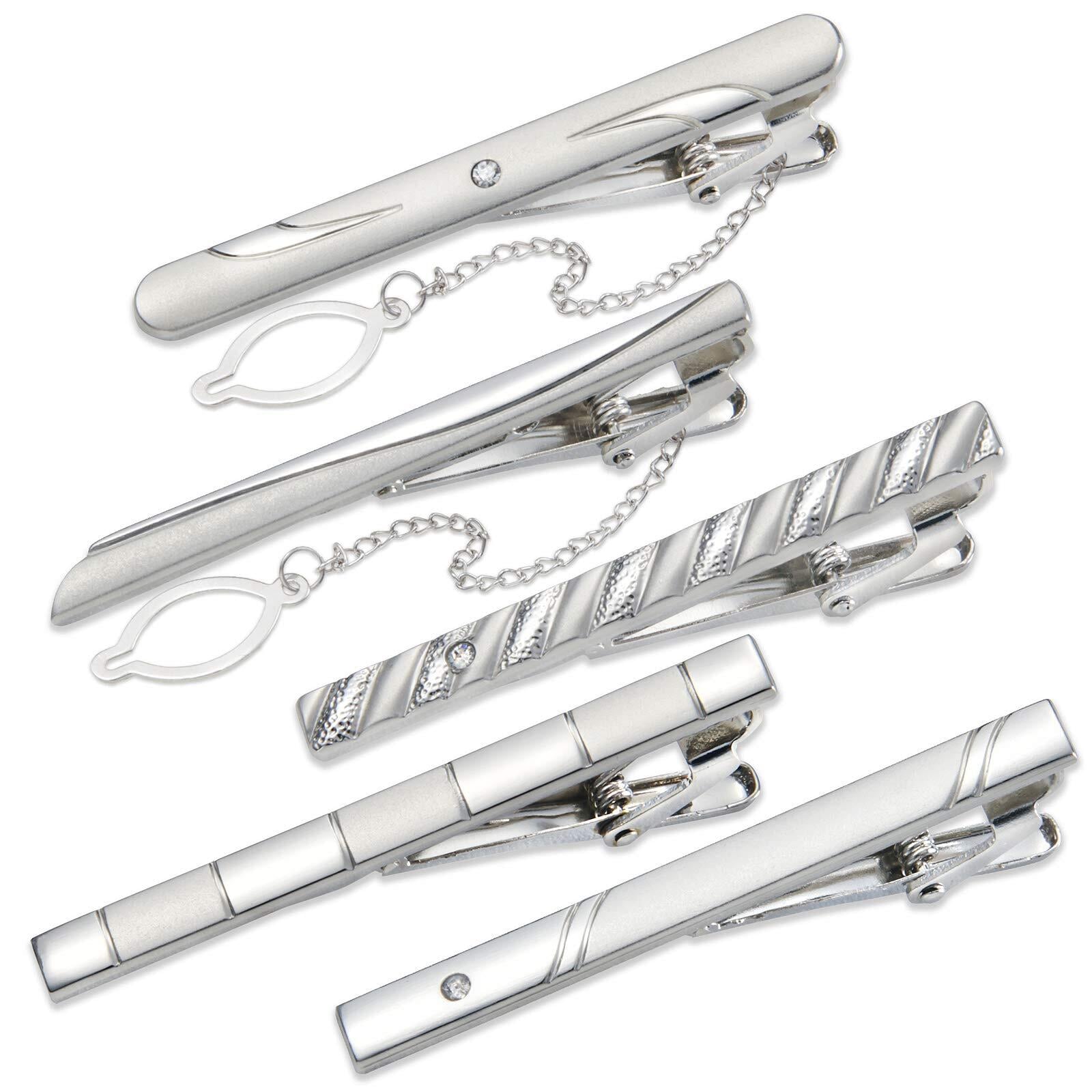 [Freate] ネクタイピン メンズ アクセサリー おしゃれ 結婚式 ブランド シンプル 高級 シルバー 5本セット (Bタイプ)