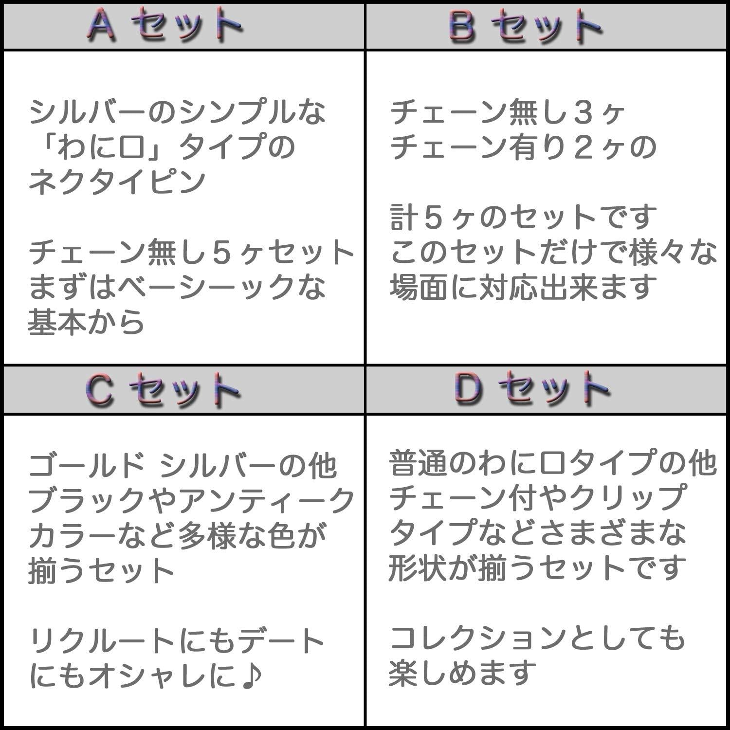 【男性用の紳士小物】お洒落なタイピン5個セットです。付け方はネクタイに挟むだけ。スーツスタイルに個性を出すことができます。カフスボタン、ポケットチーフ、カラーピンなどと組み合わせると、より華やかさを演出できます。