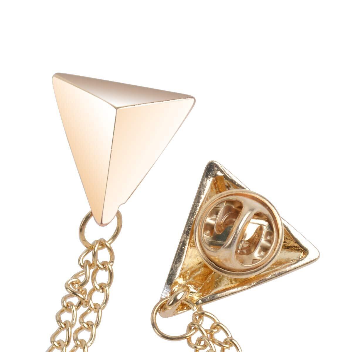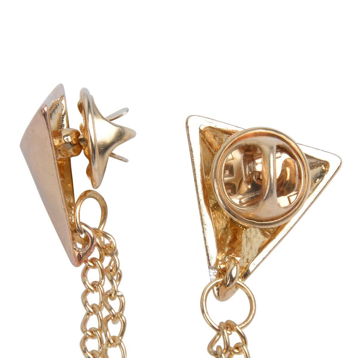 LKXHarleyaスタッドダブルチェーンブローチピン、タッセルチェーン付きシャツネックカラーチップ、スーツ用ブラウスラペルピン。