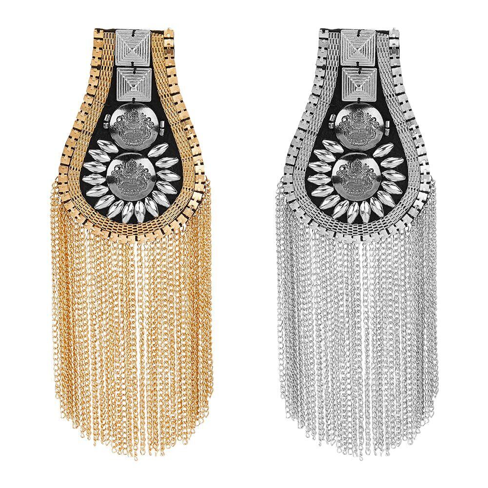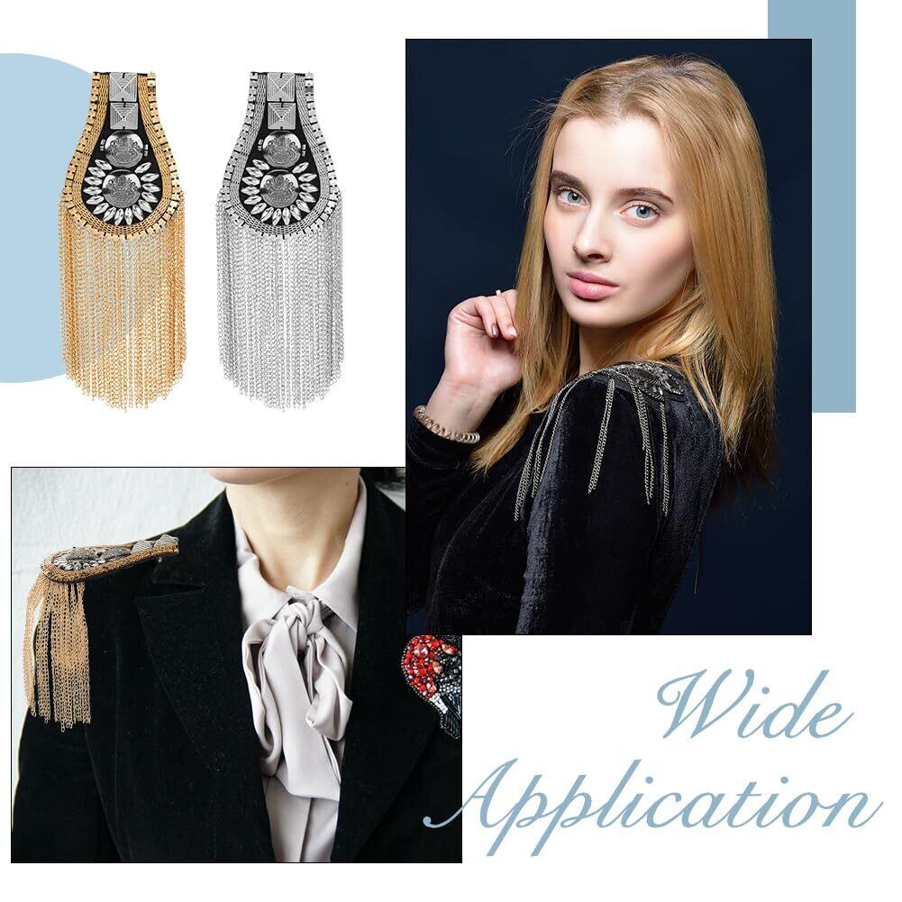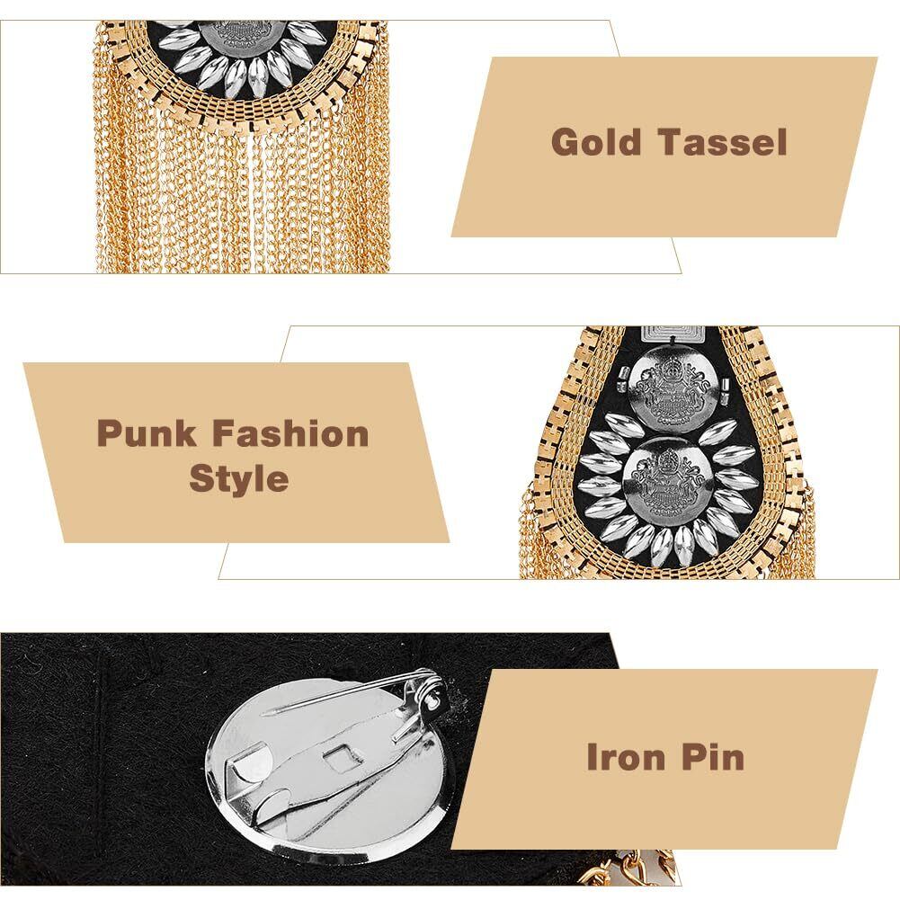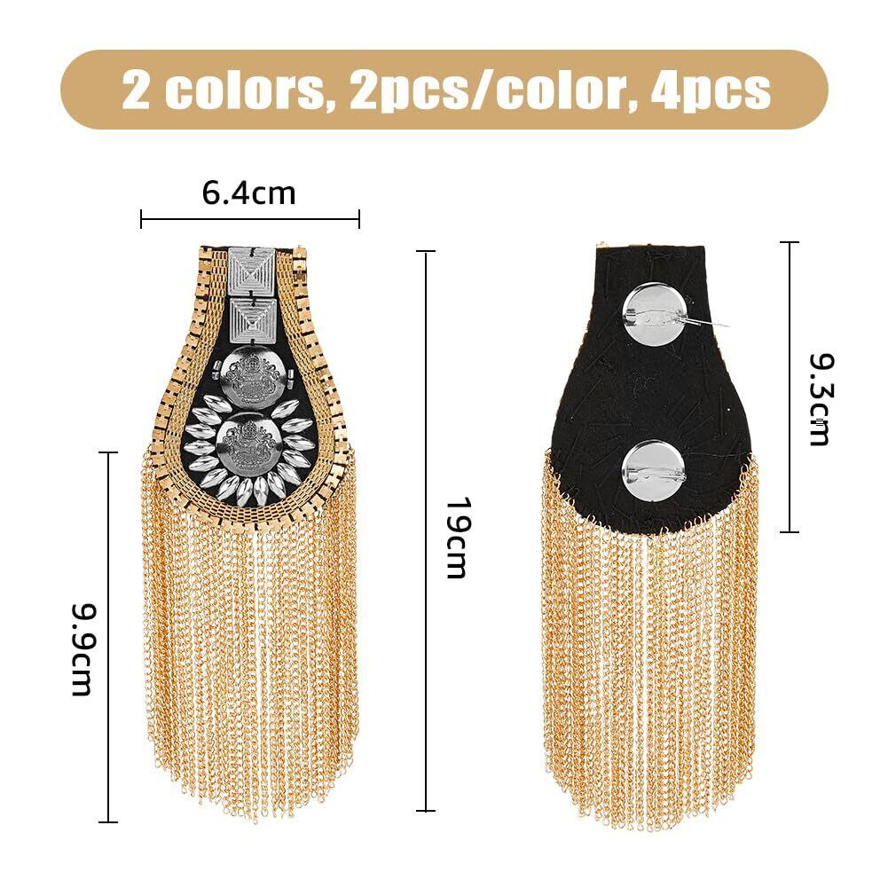SUPERFINDINGS 4個 ファッションタッセル肩章 2色 メタルパンクショルダーバッジ取り外し 可能なゴールデン肩章肩の飾り パフォーマンスに使用でき ジャケット用ピンで固定メタルパンクフリンジ