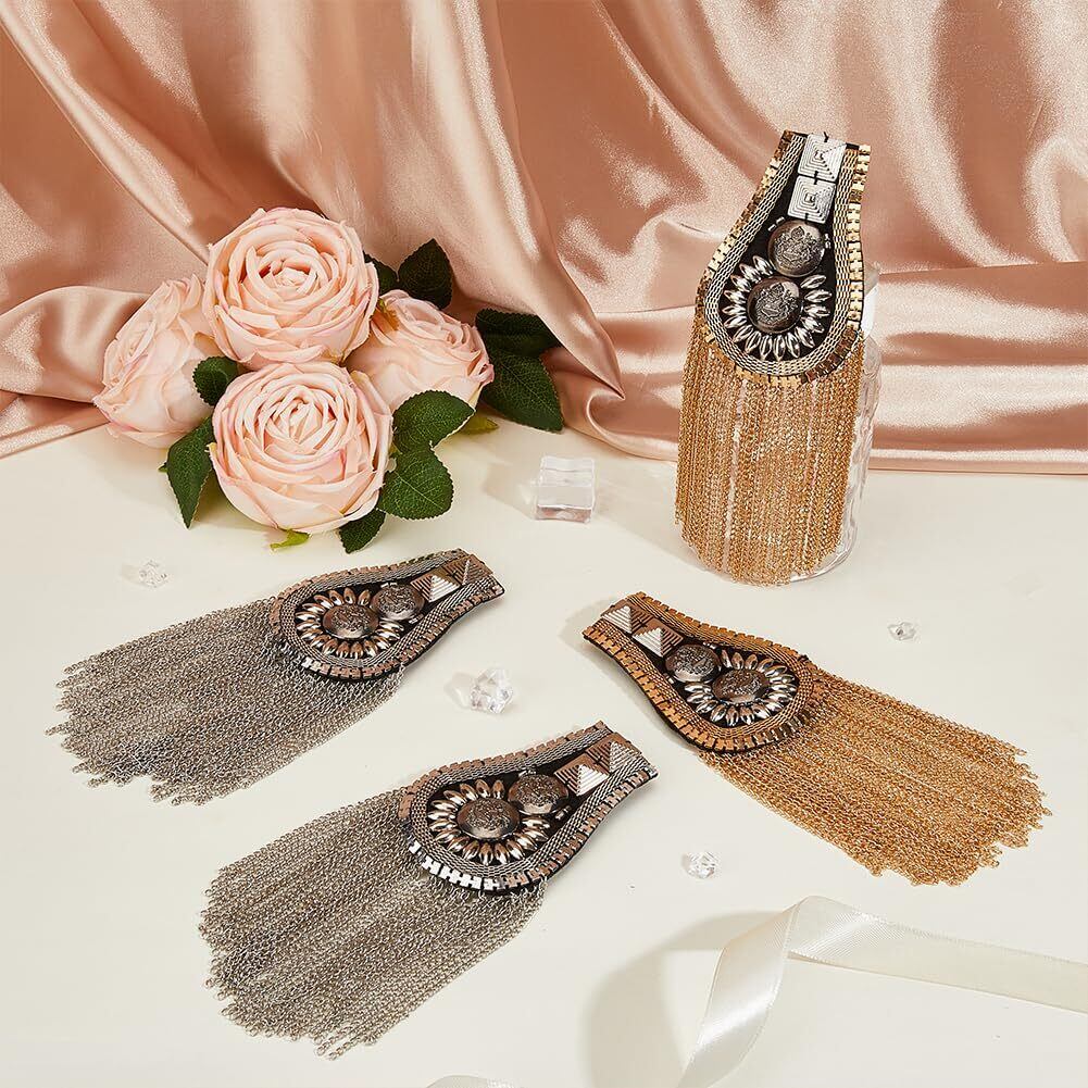 【在庫処分】SUPERFINDINGS 4個 ファッションタッセル肩章 2色 メタルパンクショルダーバッジ取り外し 可能なゴールデン肩章肩の飾り パフォーマンスに使用でき ジャケット用ピンで固定メタルパンクフリンジ | 無意味ステッカー