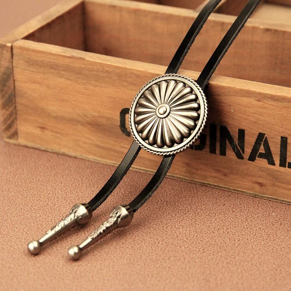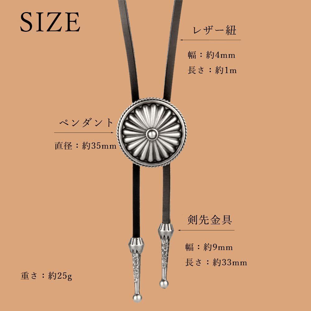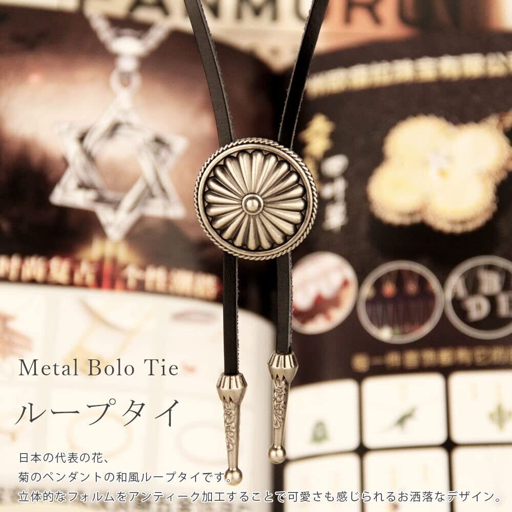 [Hikaru.G] ループタイ 和風 菊紋 アンティーク調 メタル製 レザー紐 おしゃれ ポーラータイ ネックレス