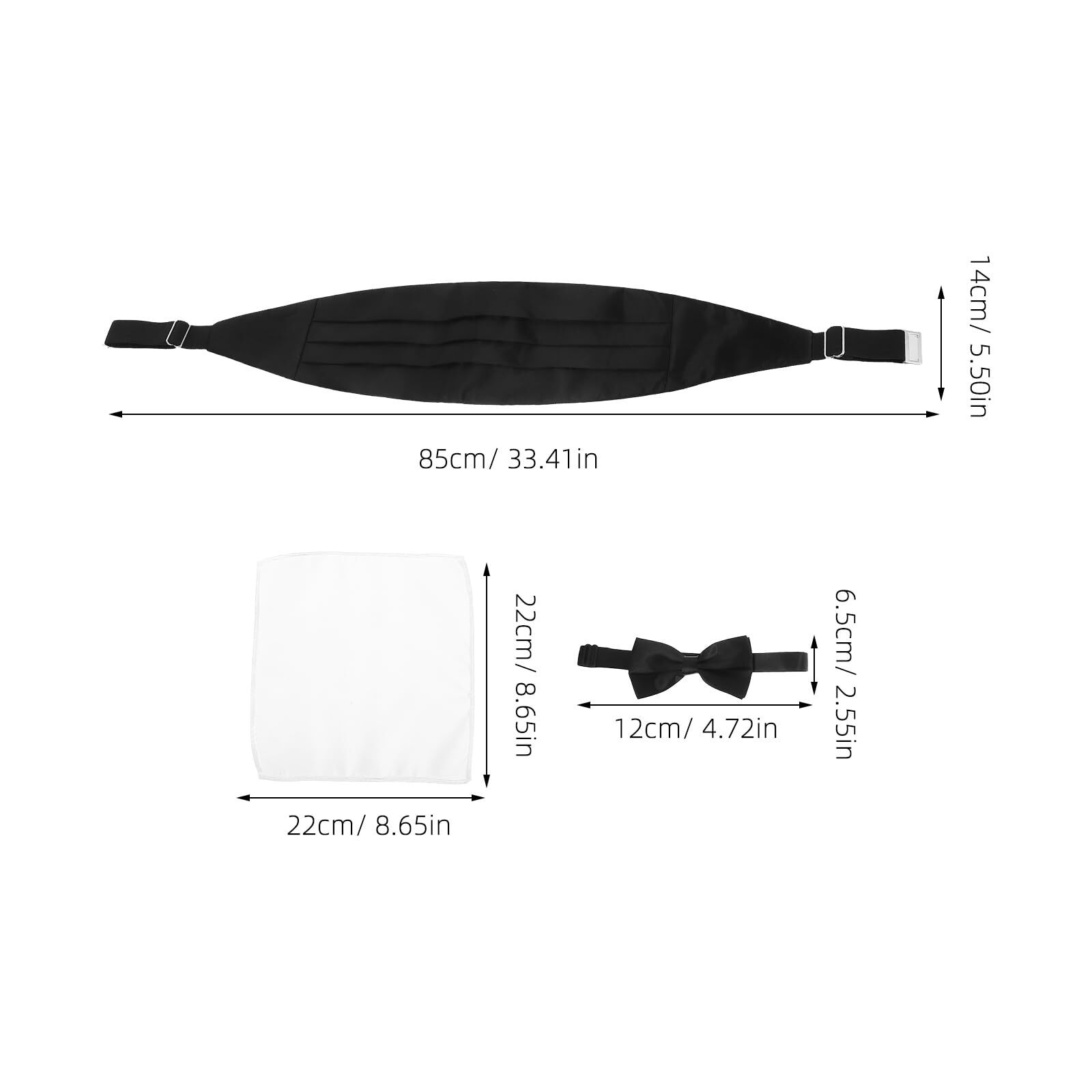 [DEARMAMY] 蝶ネクタイ カマーバンド ポケットチーフ 3点セット ワンタッチ 黒 白 メンズ フォーマル タキシード 宴会 ビジネス 結婚式 アクセサリー