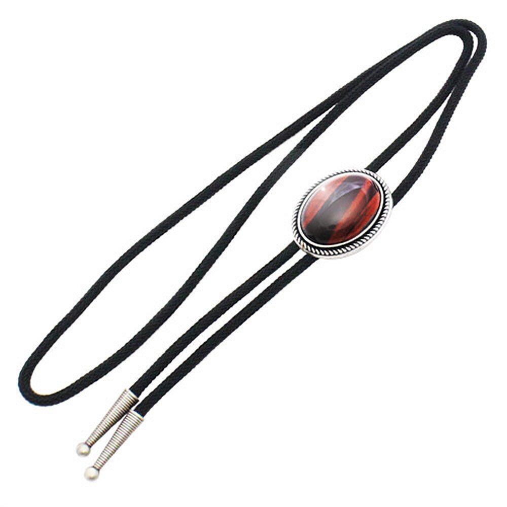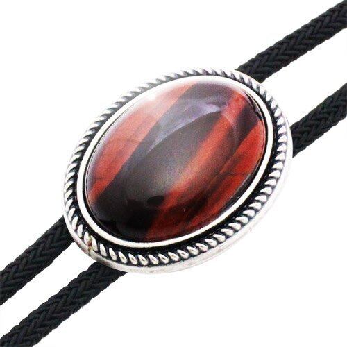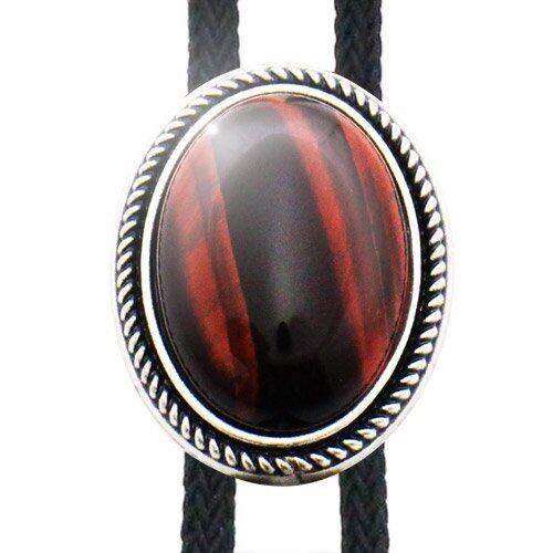 [Bowties.jp] レッド ブラウン タイガーアイ オーバル ストーン ループタイ ボロタイ prt0198