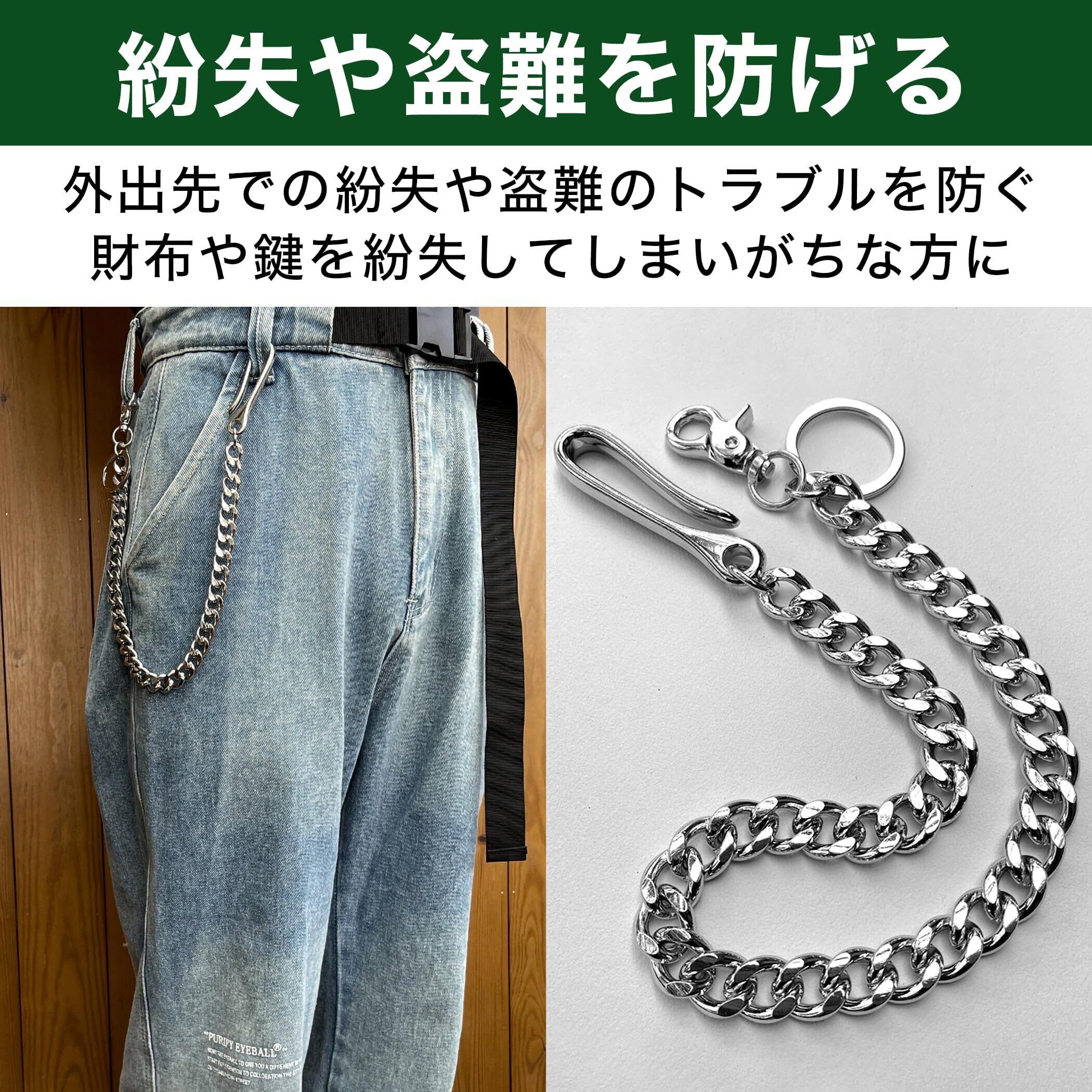 紛失や盗難を防げる:財布や鍵などを持ち歩く時にこちらのチェーンを取り付けてズボンのベルトループに接続しておけば、外出先で紛失してしまったり、盗まれたりしてしまうトラブルもなくなります。財布や鍵を紛失してしまいがちな方にもおすすめです。