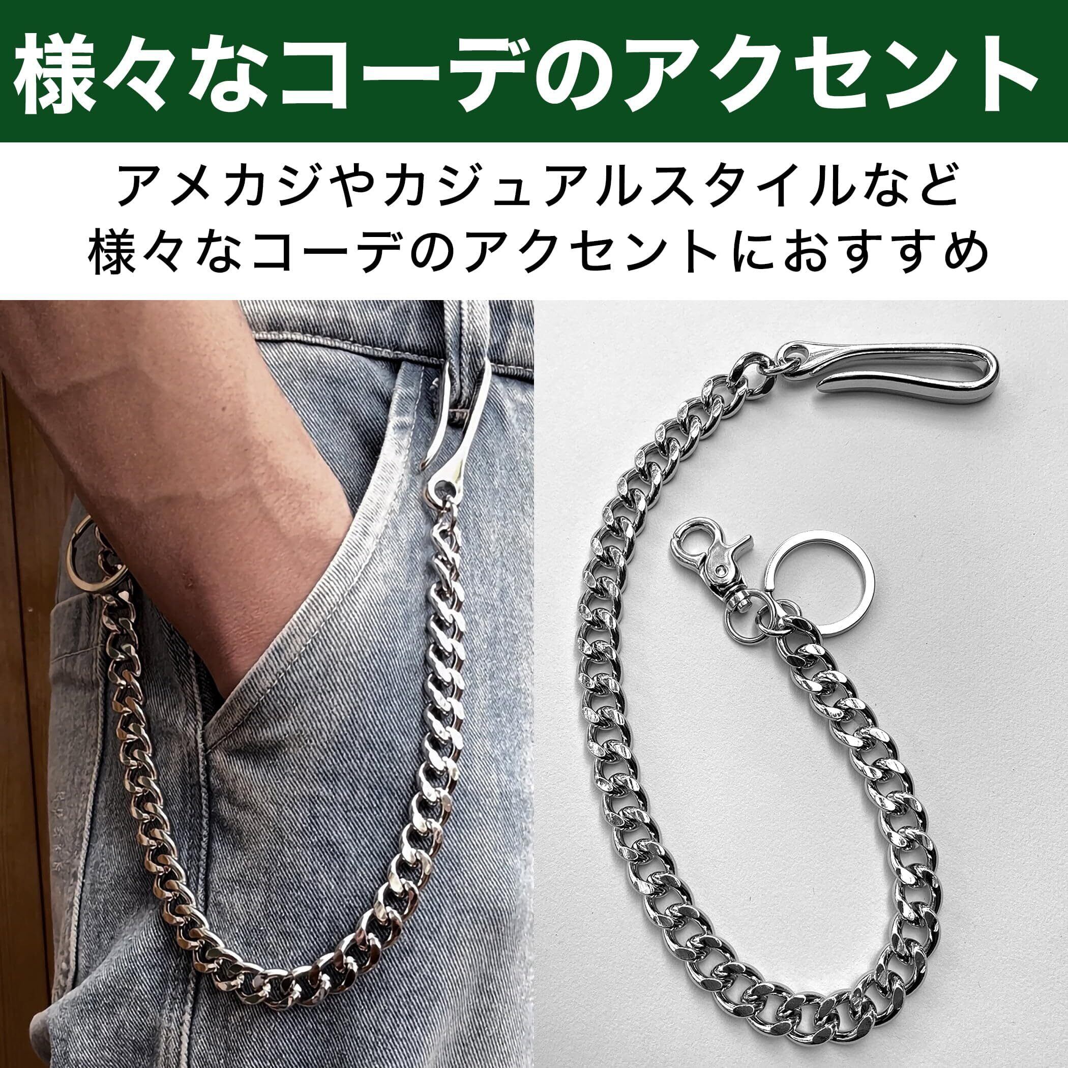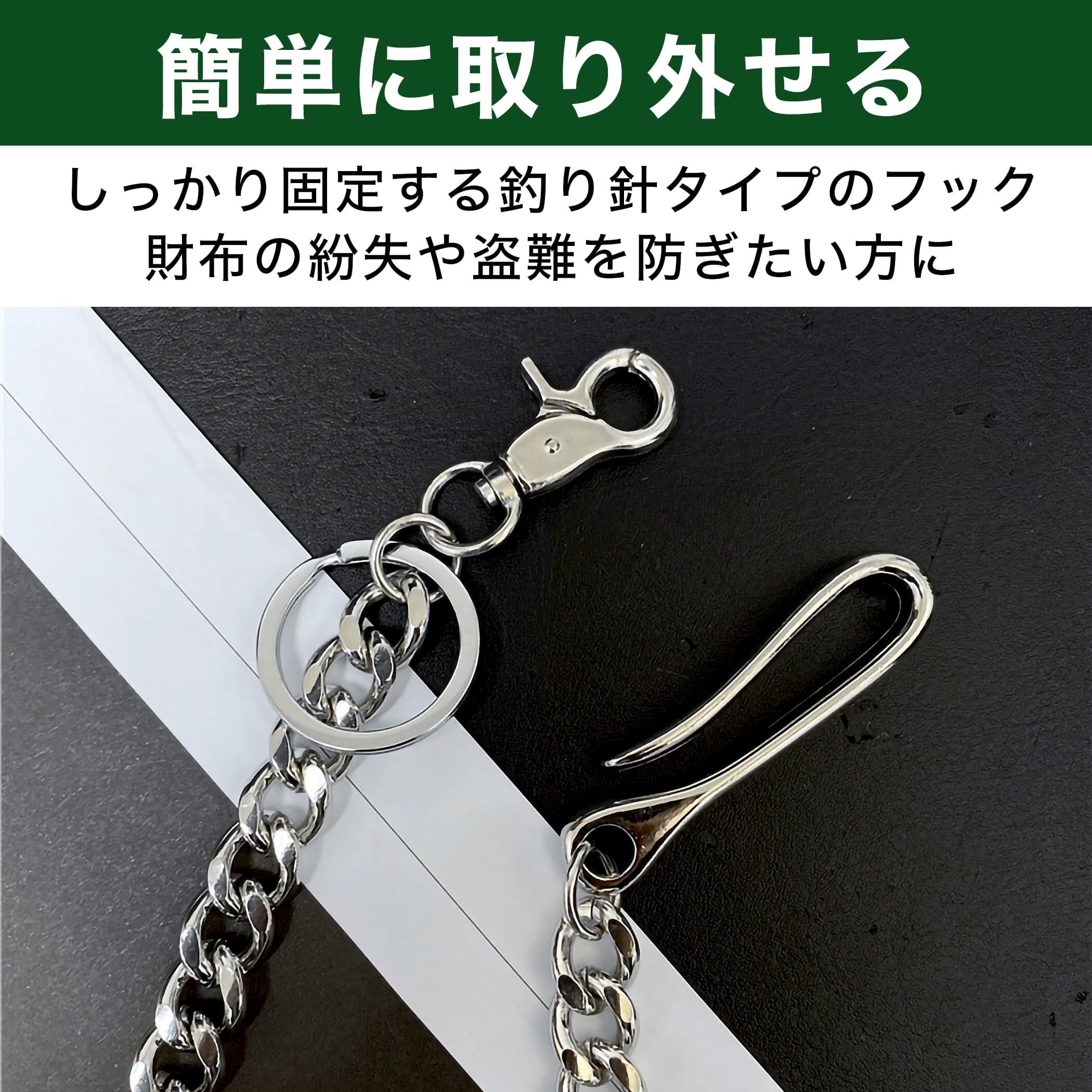 ベルトループから簡単に取り外せる:付け外ししやすく、しっかり固定できる釣り針タイプのフックが採用されたウォレットチェーンですので、ベルトループから簡単に取り外すことができます。財布の紛失や盗難を防ぎたい方は、ぜひ活用してみてはいかがでしょうか。