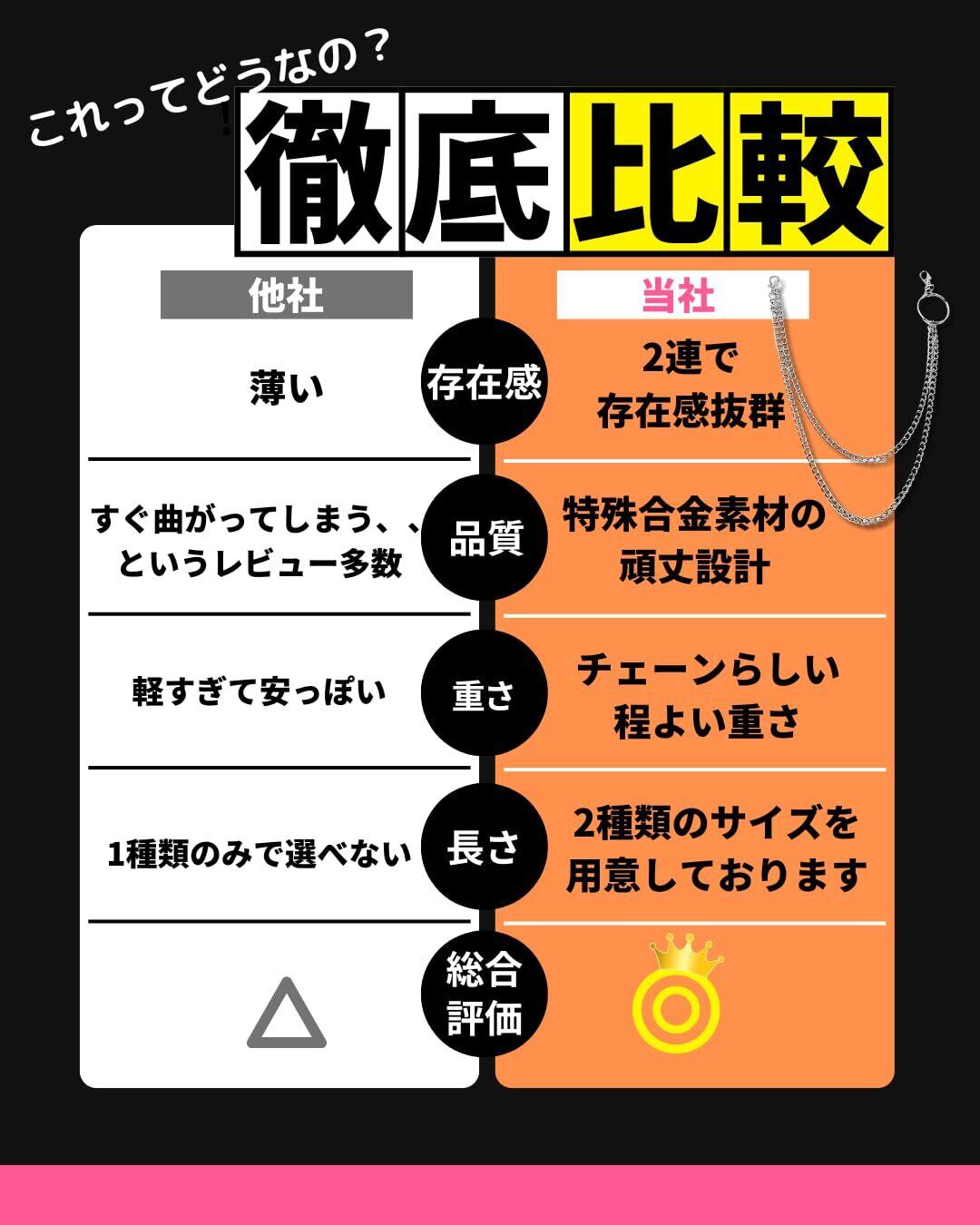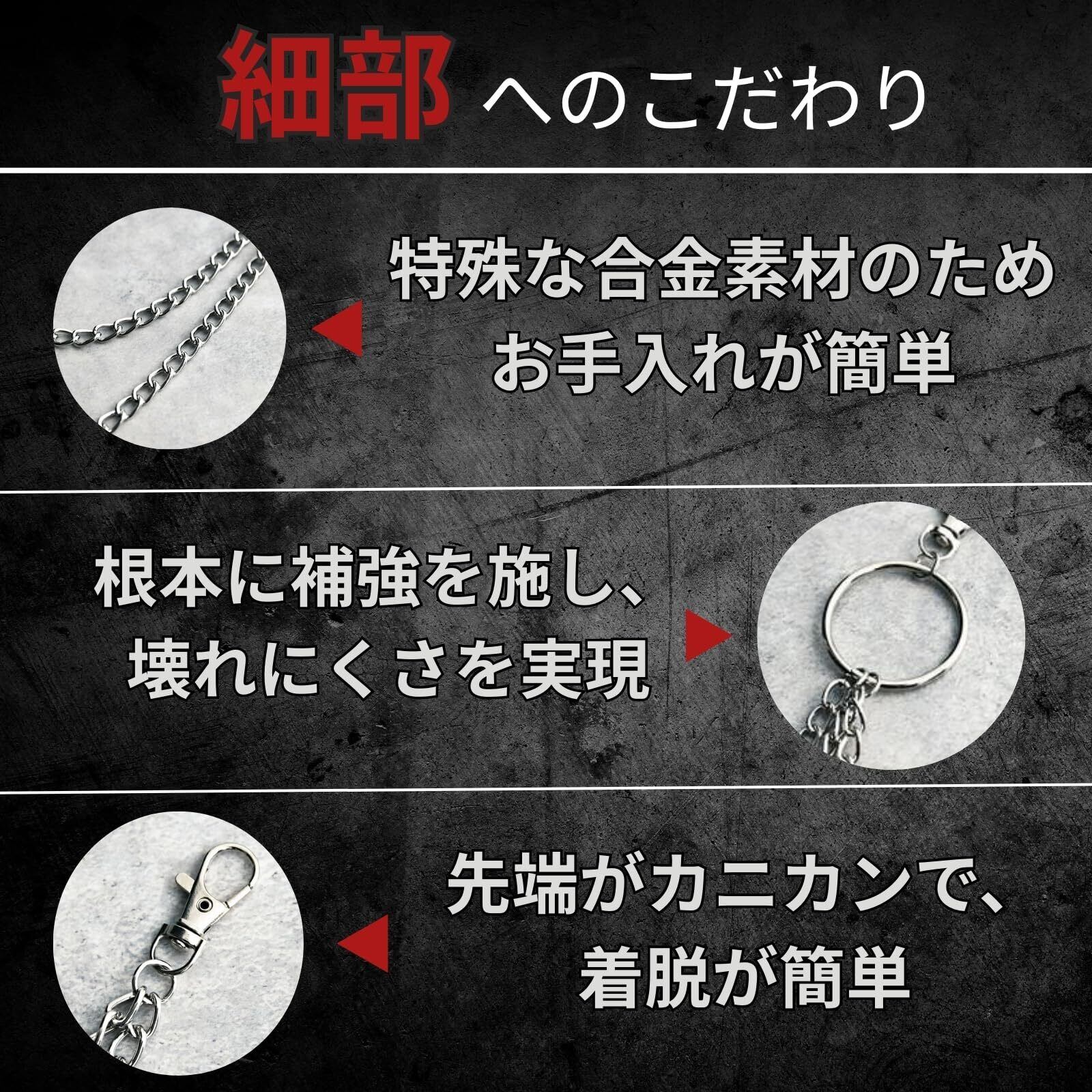 ウォレットチェーン、ジーンズチェーン、キーチェーン、財布チェーンなどとしてご利用いただけます。