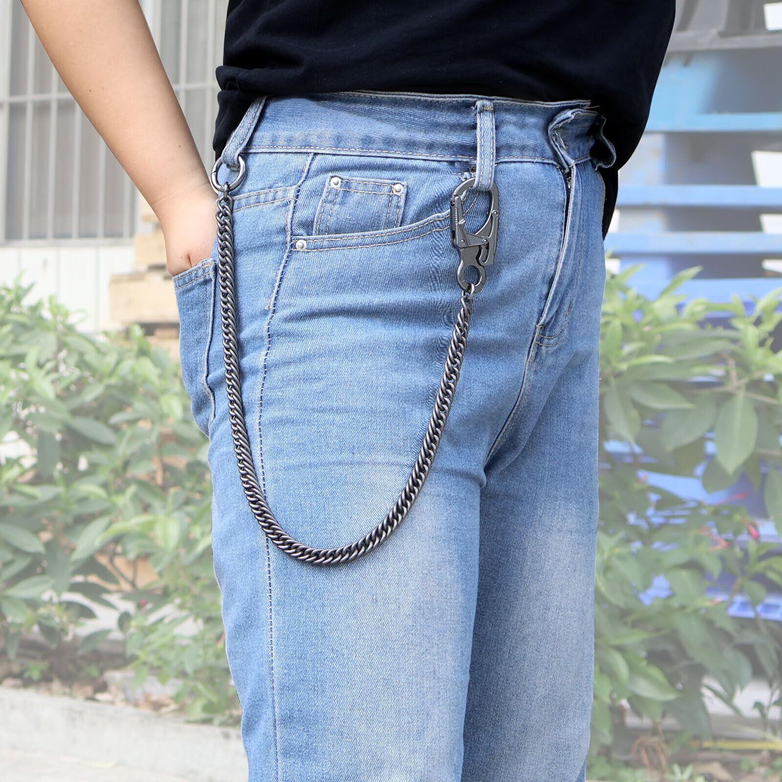 【材質】: 当社のジーンズチェーンは、高品質のステンレススチール製で、耐久性のある亜鉛合金のキーホルダーと小さなクラスプロックが付いています