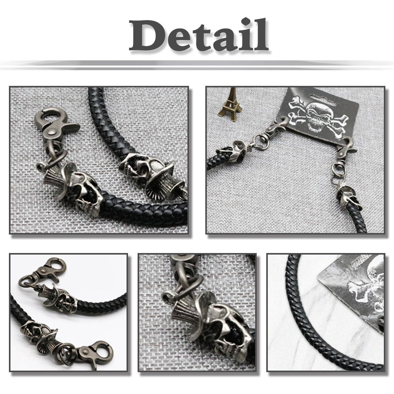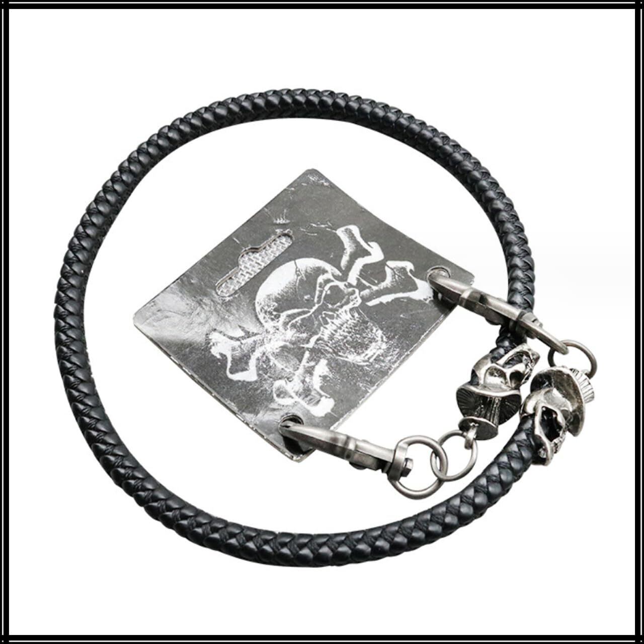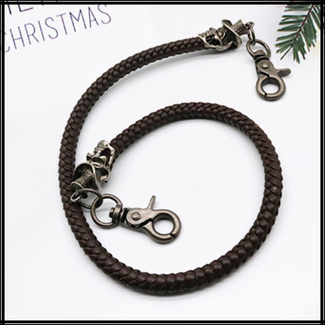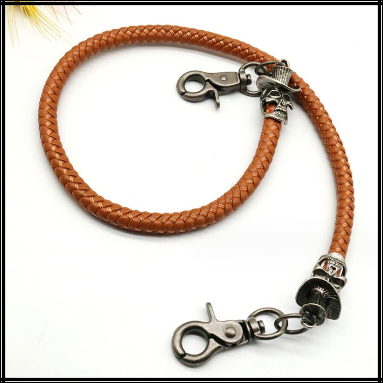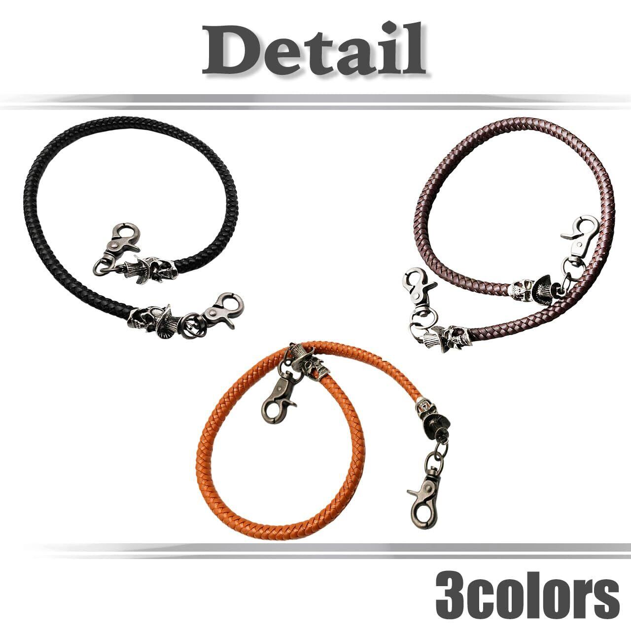 シンプルなデザインのおしゃれなメンズレザーウォレットチェーンです。ドクロのワンポイントでロックテイストの仕上がりです。