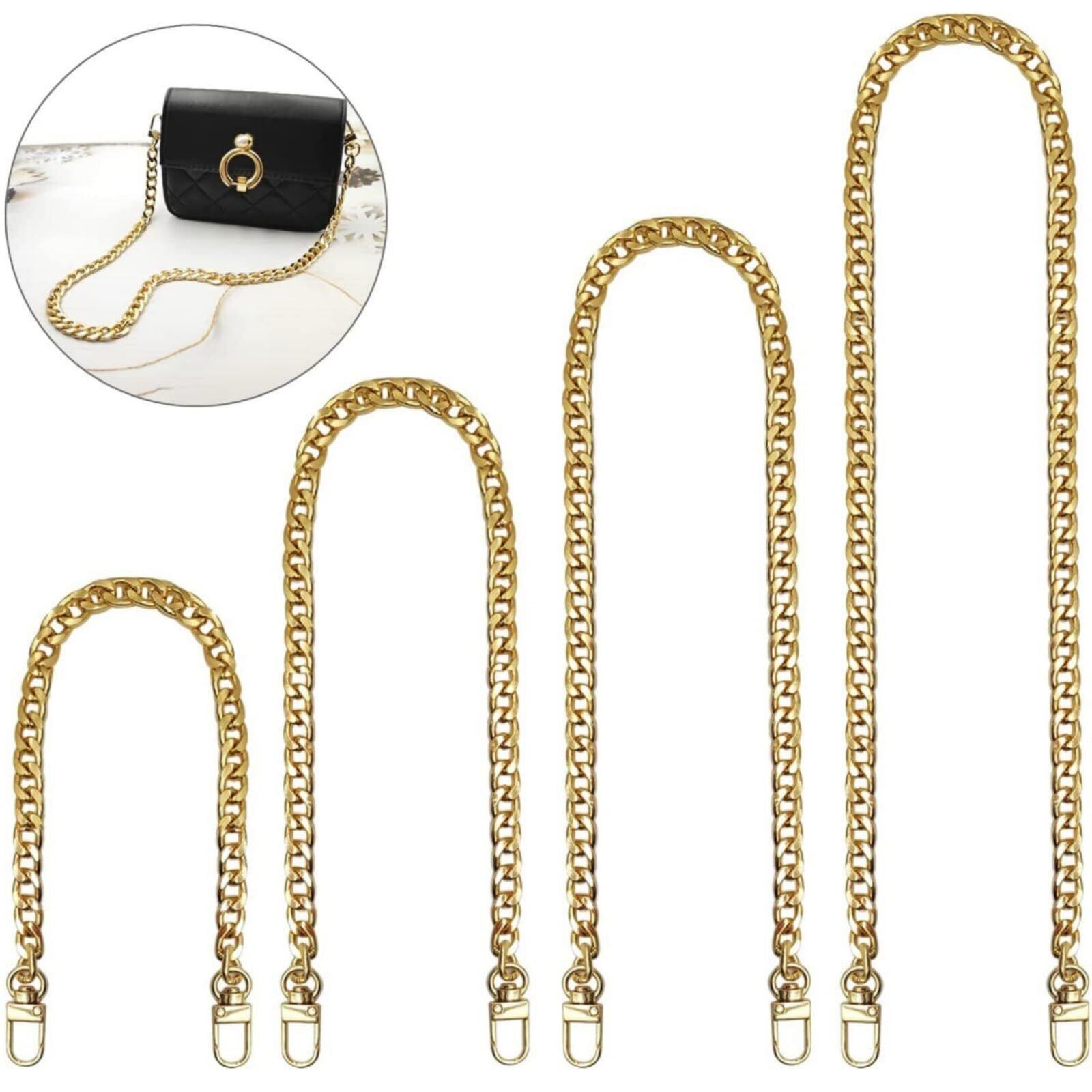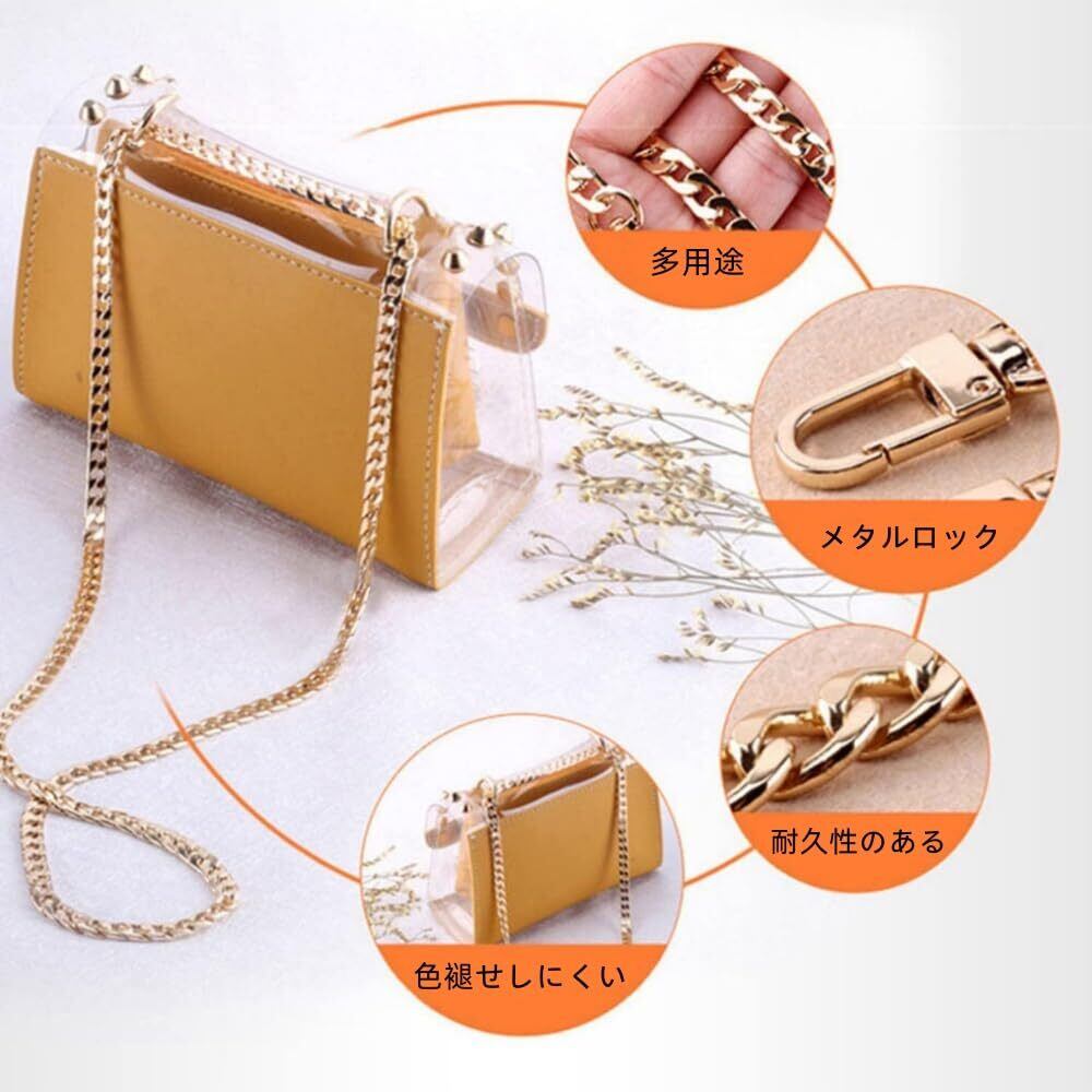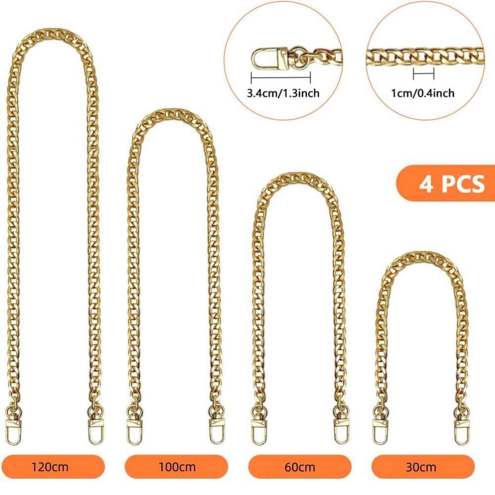 バッグチェーン 4本入り バッグ持ち手 ショルダーストラップ ハンドバッグチェーン フラットチェーン30/60/100/120cm (ゴールド)