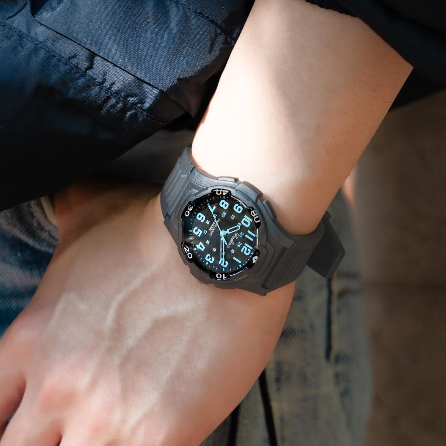 ●シンプルで見やすい文字板と10気圧の防水性を備えた、普段使いに最適なスタンダードな腕時計。