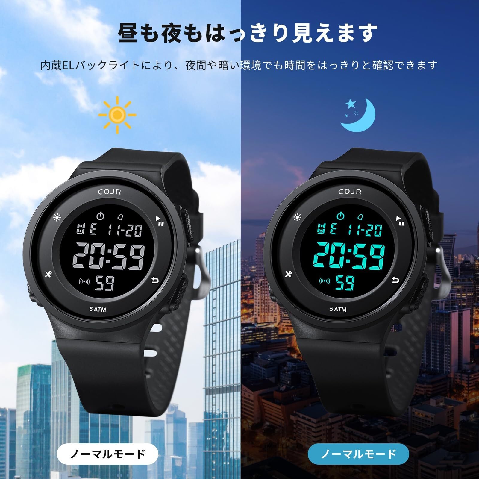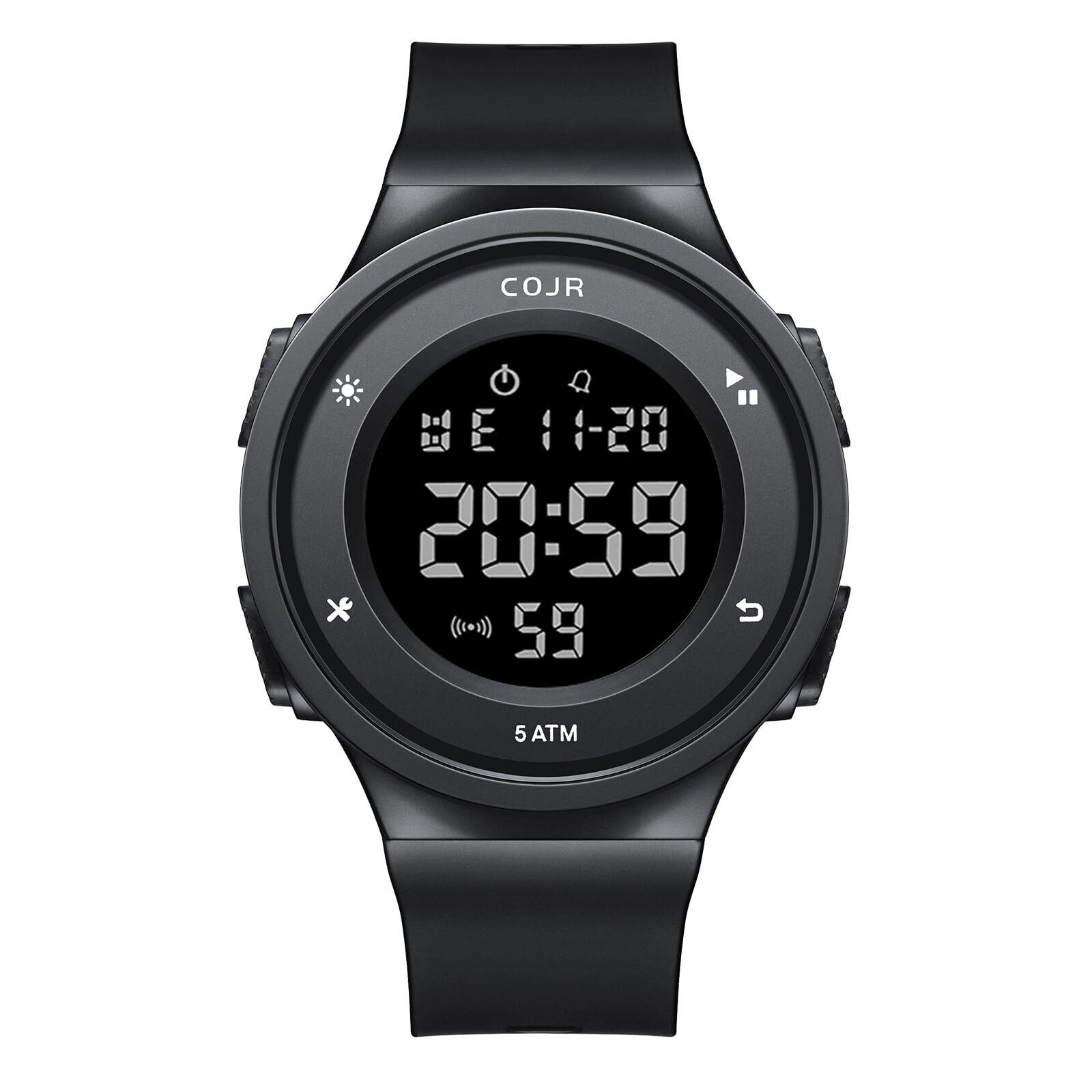 【COJR】腕時計 メンズ デジタル ランニングウォッチ 50メート防水 多機能付き スポーツウォッチ 日付 曜日 アラーム ストップウォッチ LED表示 シンプル アウトドア おしゃれ 男女兼用 日本語と英語説明書付き (ブラック Ⅰ)
