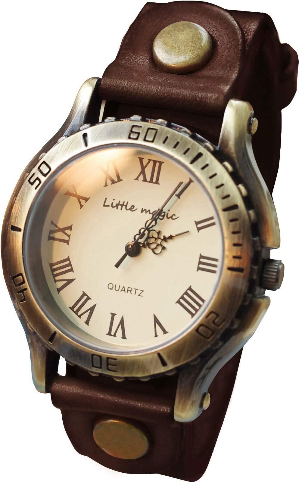 [リトルマジック][経年変化するJapanレザー]【日本製ムーブメント】[金属アレルギー対応] 腕時計 メンズ レディース 時計 アンティーク風/オールドクロック(ダークブラウンMサイズ)