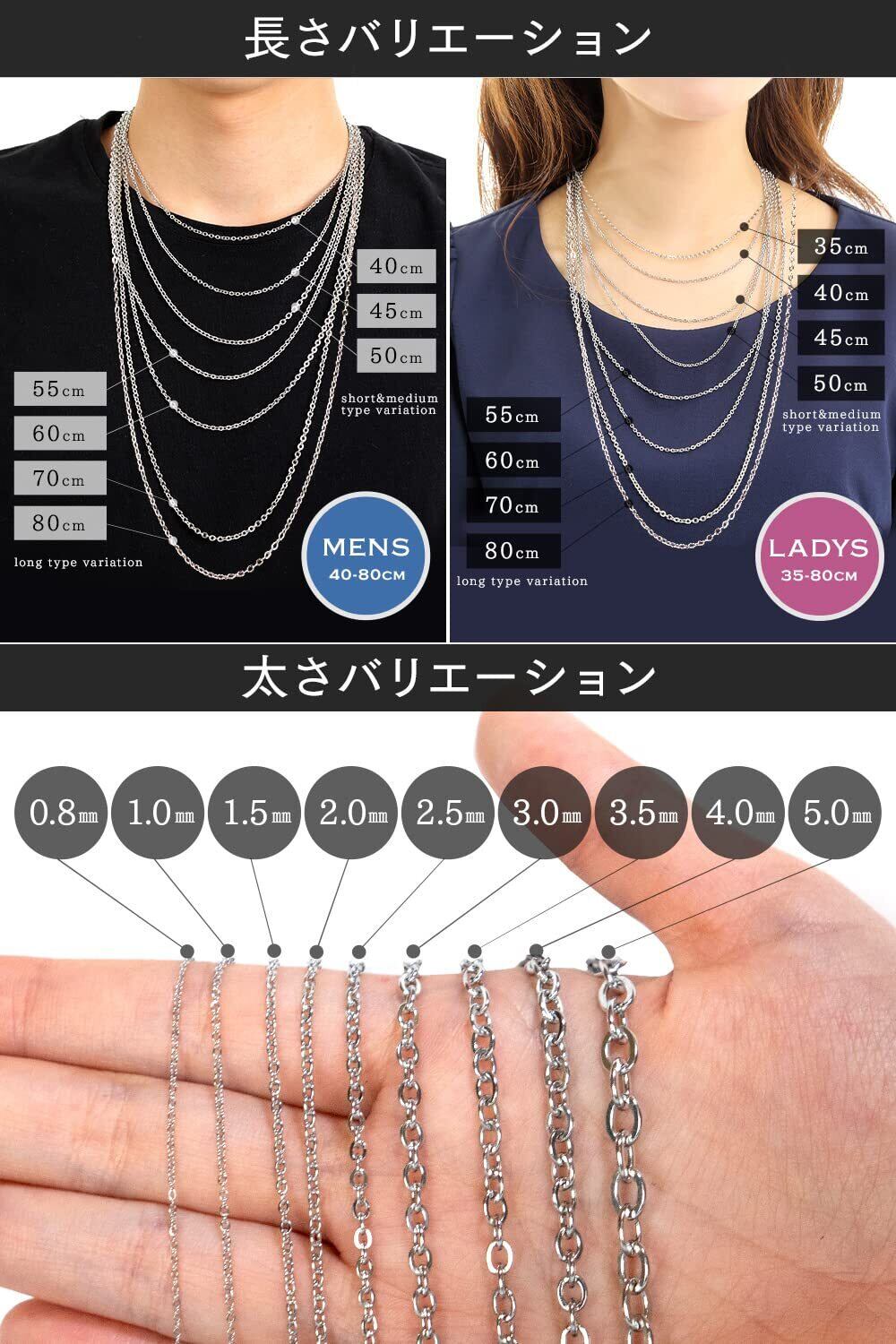 【 ネックレス チェーン のサイズ 】長さ:40cm / 太さ:0.8mm / 重量:0.8g / 留め具:カニカン(つけ外ししやすいオリジナルフック金具) /フック金具の幅:約3mm/丸カン直径:約3mm(ペンダントトップの通し穴のサイズをご確認ください。)