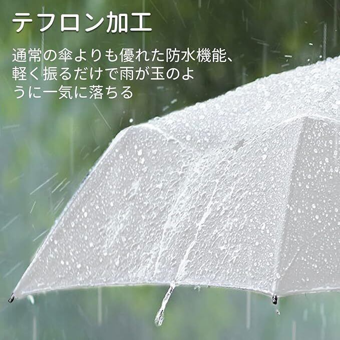 【晴雨兼用】この折りたたみ傘は高密度防水素材を採用し、超撥水テフロン加工が施され、通常の折りたたみ日傘よりも優れた防水機能、軽く振るだけで雨が玉のように一気に落ちるので、他の人の邪魔になることもありません。雨の日も、晴れの日も兼用でご利用頂けます。