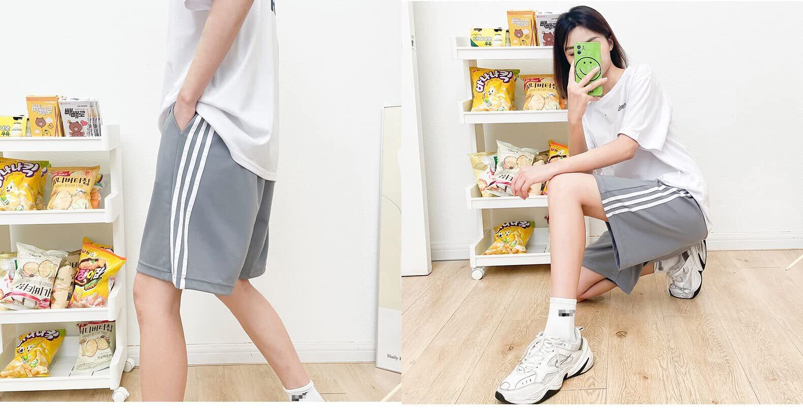 ショートパンツのウエスト部分はストレッチのゴム素材、調節可能な紐も付きので、自分で調整可能、快適性が良くです。おしゃれで実用的なアイテムです。