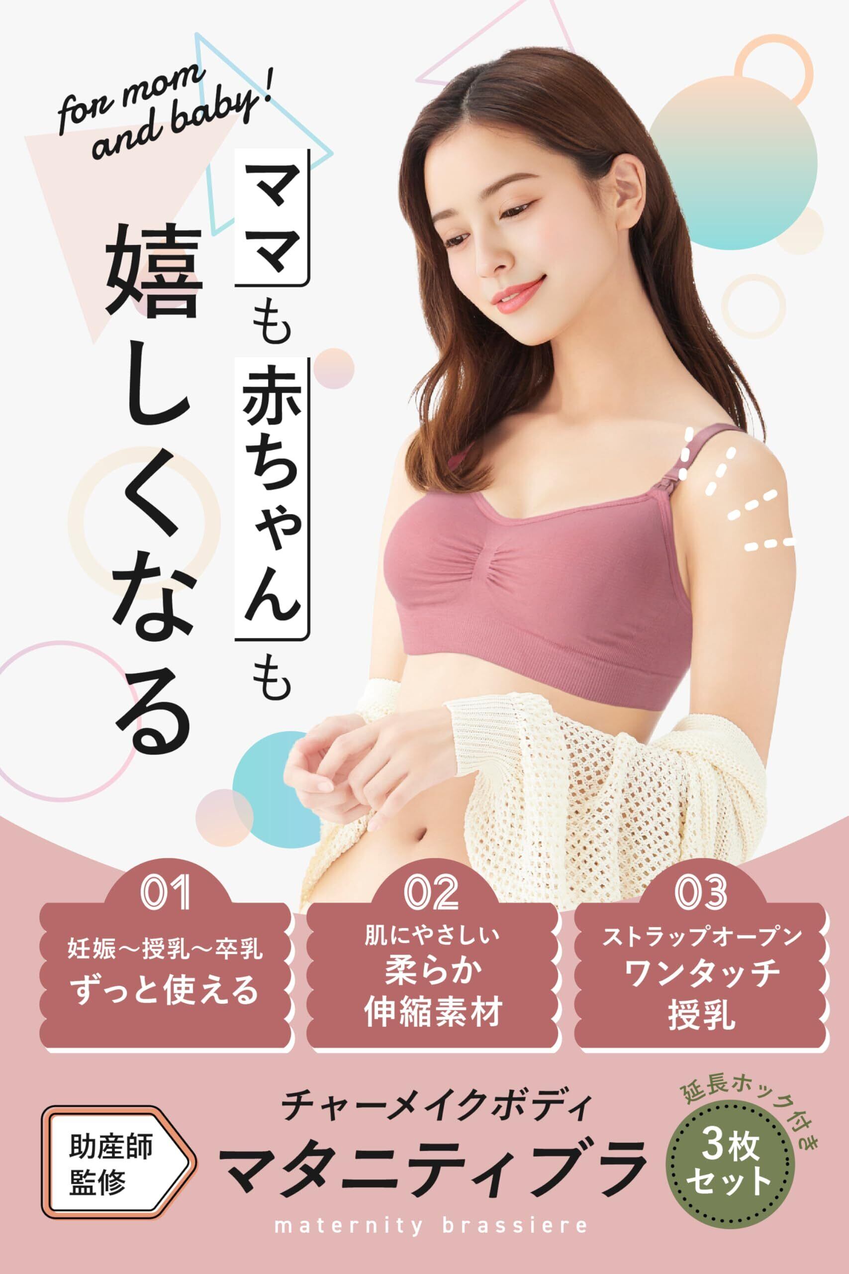 [チャーメイクボディ] 3枚セット 授乳ブラ 垂れ防止 肌に優しい マタニティブラ ストラップオープン 産前 産後 延長ホック付き