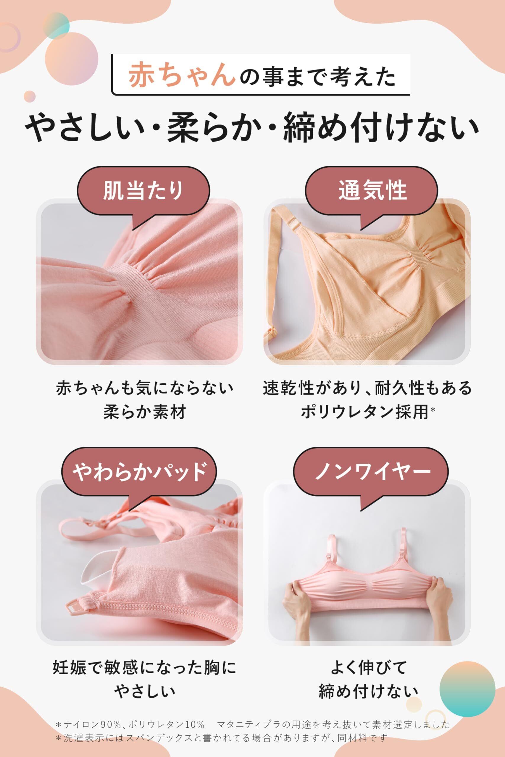 【ママも赤ちゃんも嬉しくなる】助産師監修のマタニティブラ3枚セット。産前産後ずっと使える、肌にやさしい柔らか伸縮素材、レースやボタンを使わないことで赤ちゃんへの肌当たりに配慮しました。