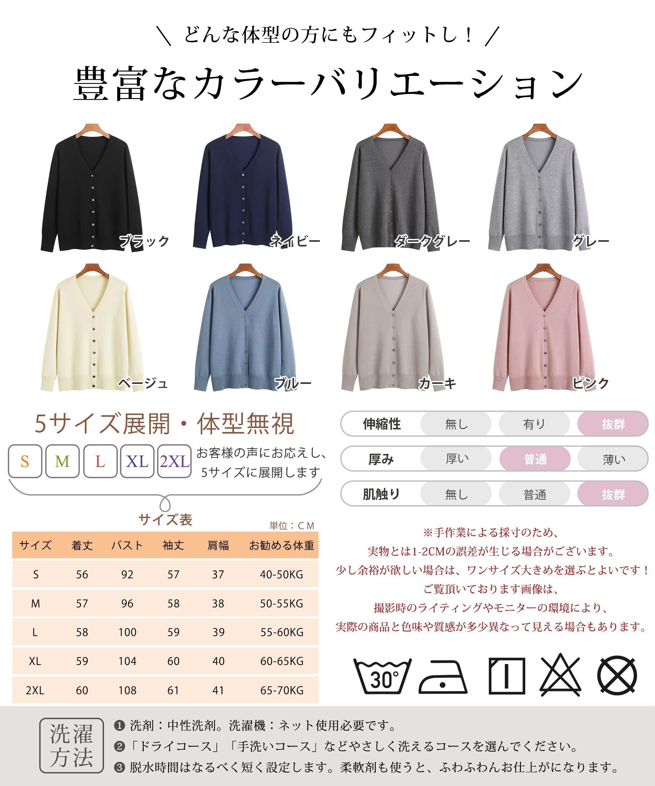 【シンプル・誰でも適用】適度な厚みのニット素材だから、柔らかく肌になじむカーディガン ニットです。これからの季節はもちろん、軽やかな着心地とサッと羽織れるのが魅力です。軽やかなニットカーディガンのおかげで、自由に身を動かせるだけでなく、簡単にポイントを失うこともありません。きめが細かく肌触りもよく、風を通しにくい生地感になります。肌寒さを感じる日にぴったり着用するセーターです。
