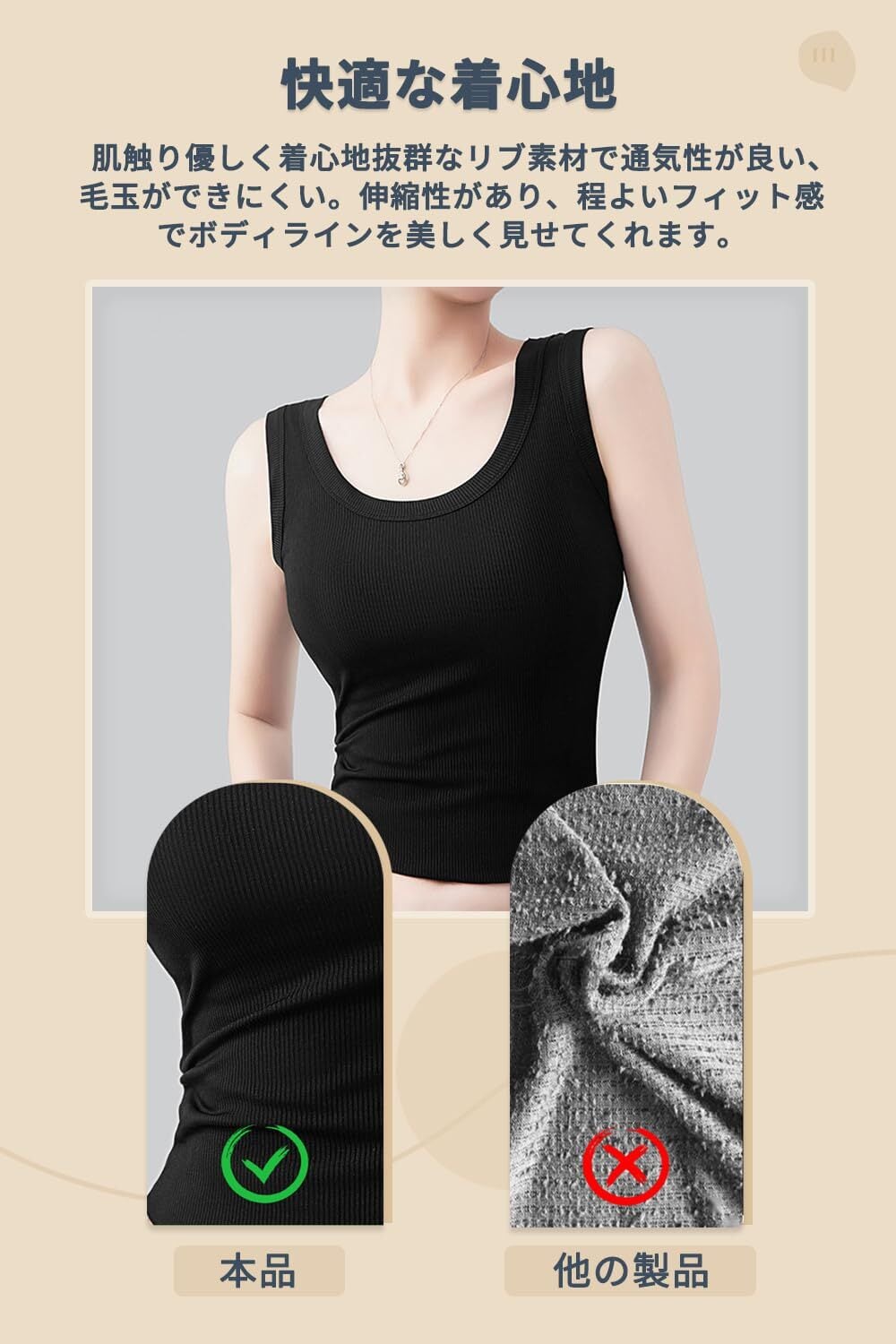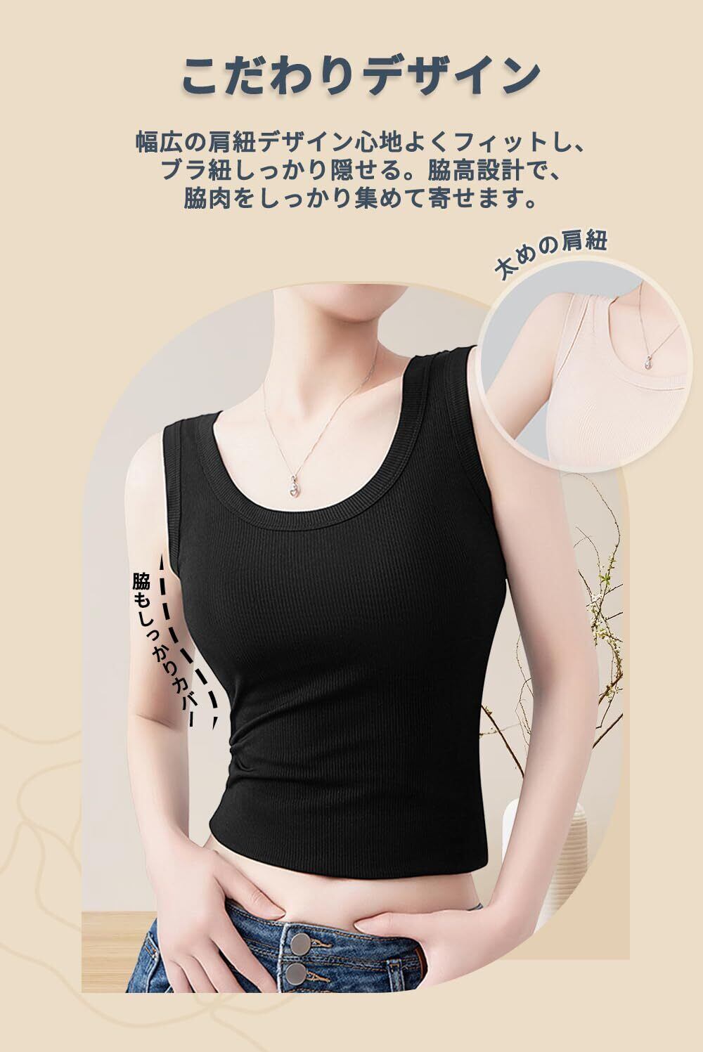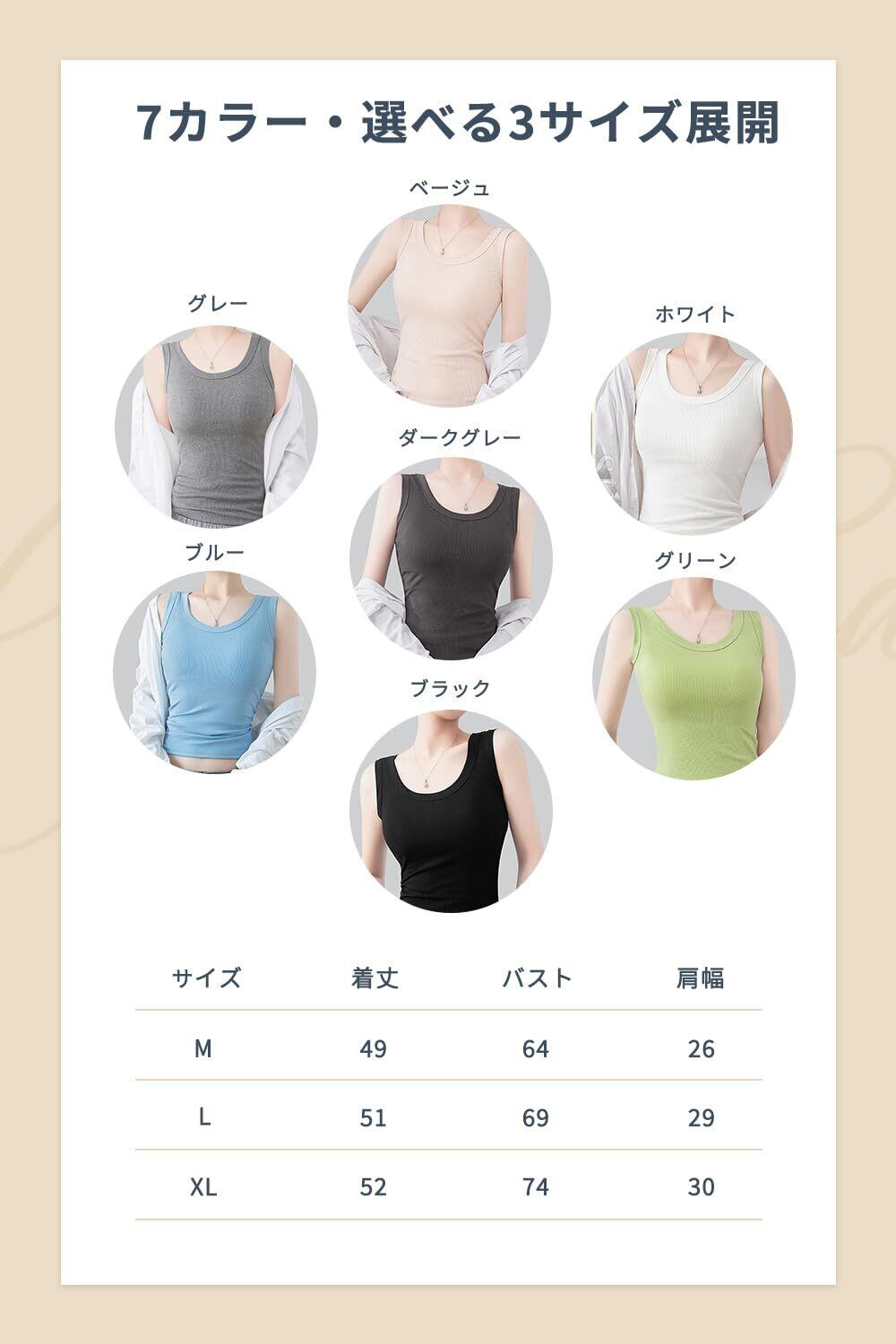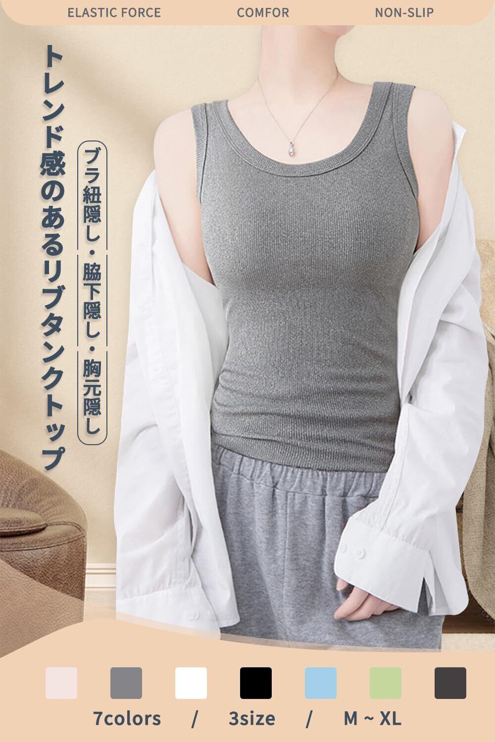 [Pneito] タンクトップ レディース おしゃれ 3サイズ リブ インナー レディース ブラ紐隠し キャミソール 脇下隠し・胸元隠し 重ね着 通気性 伸縮性 部屋着 夏 7色