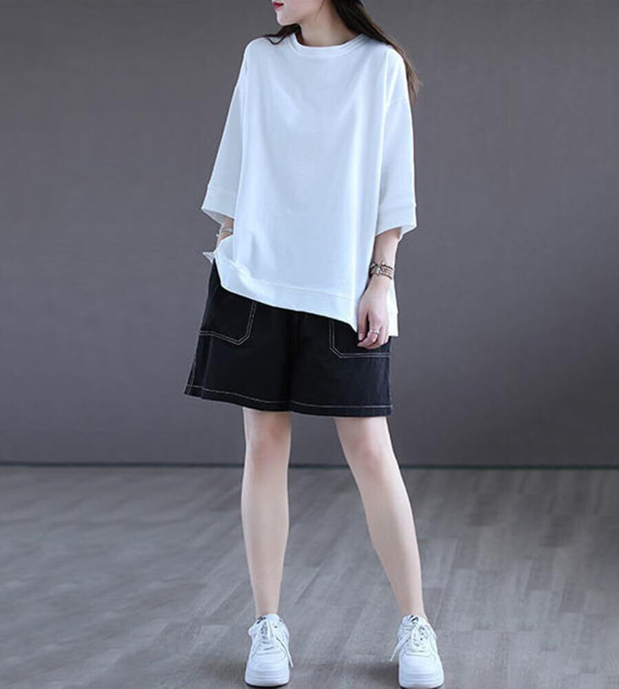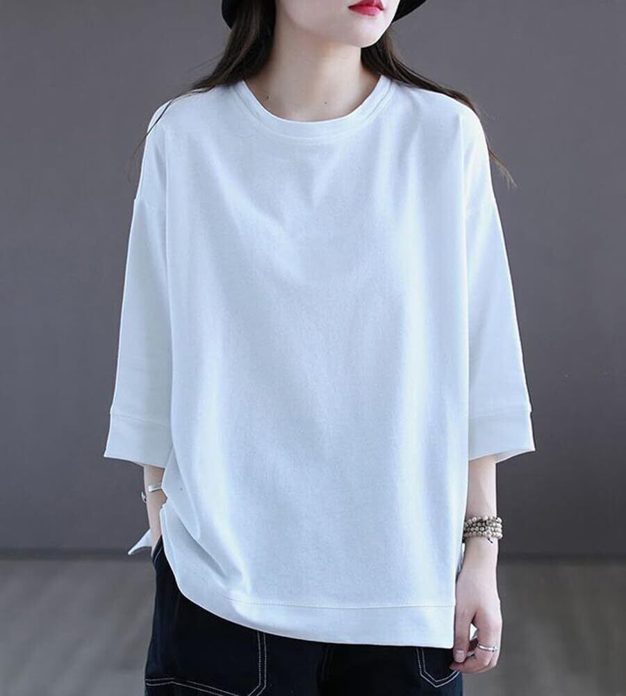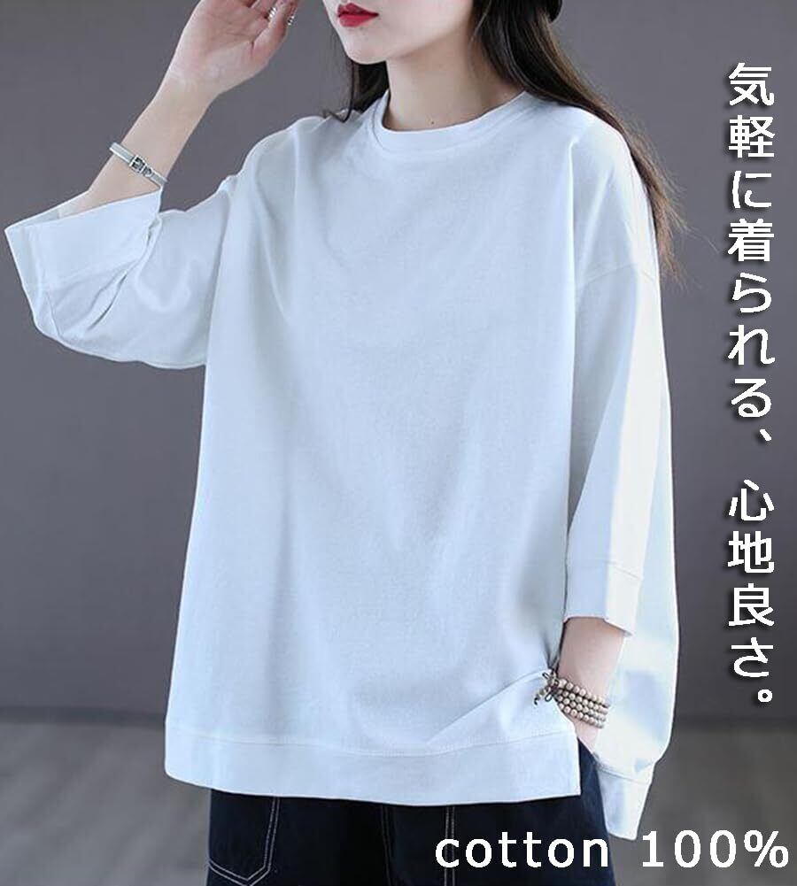 [Muzly] 綿100% tシャツ レディース カットソー 7分袖 涼しい カジュアル 大きいサイズ 無地 春 夏