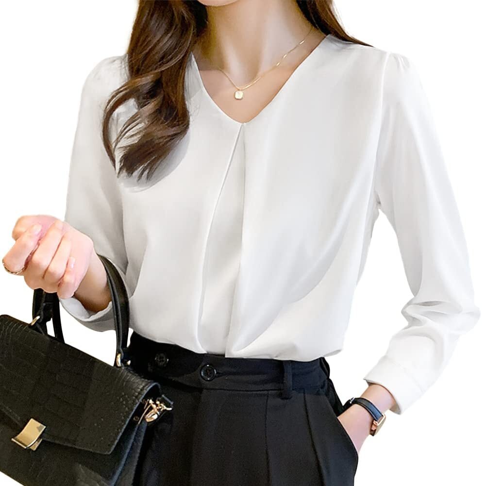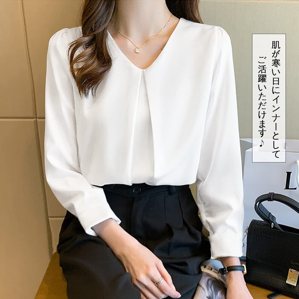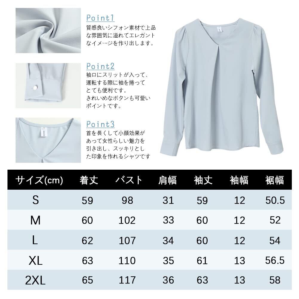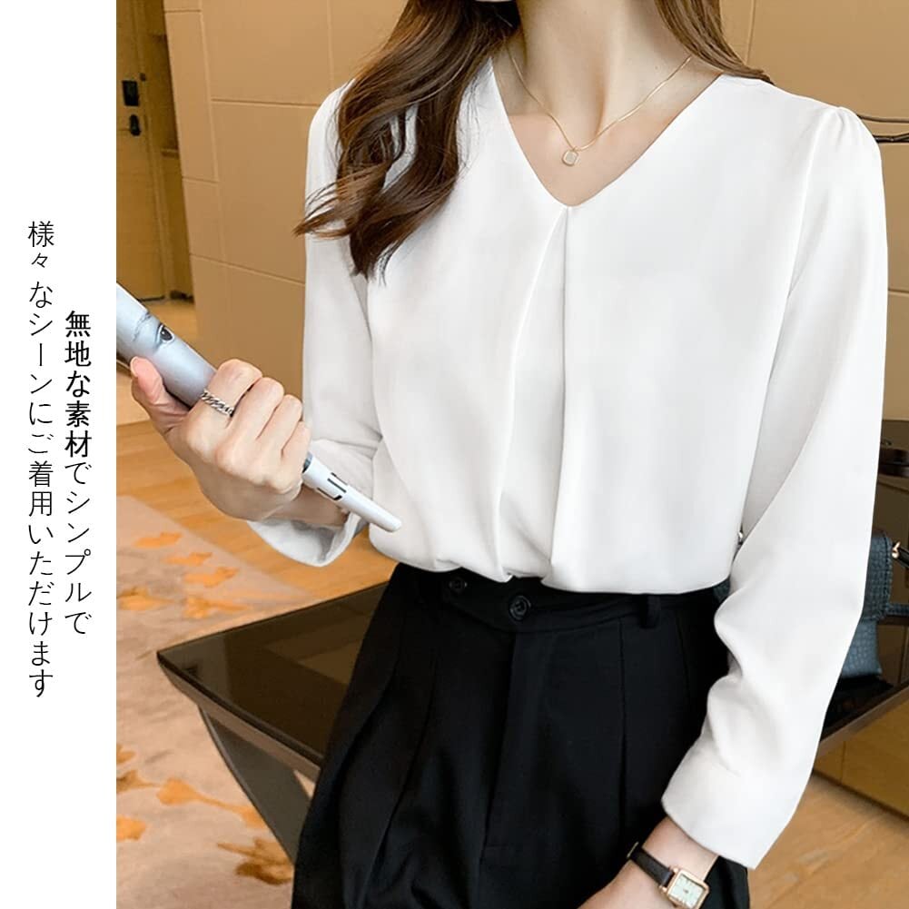 [Bidason] ブラウス レディース 長袖 シフォン シャツ Vネック ゆったり 着痩せ タック カジュアル 体型カバー きれいめ おしゃれ 可愛い スッキリ洗える トップス 通勤 デート 秋 冬