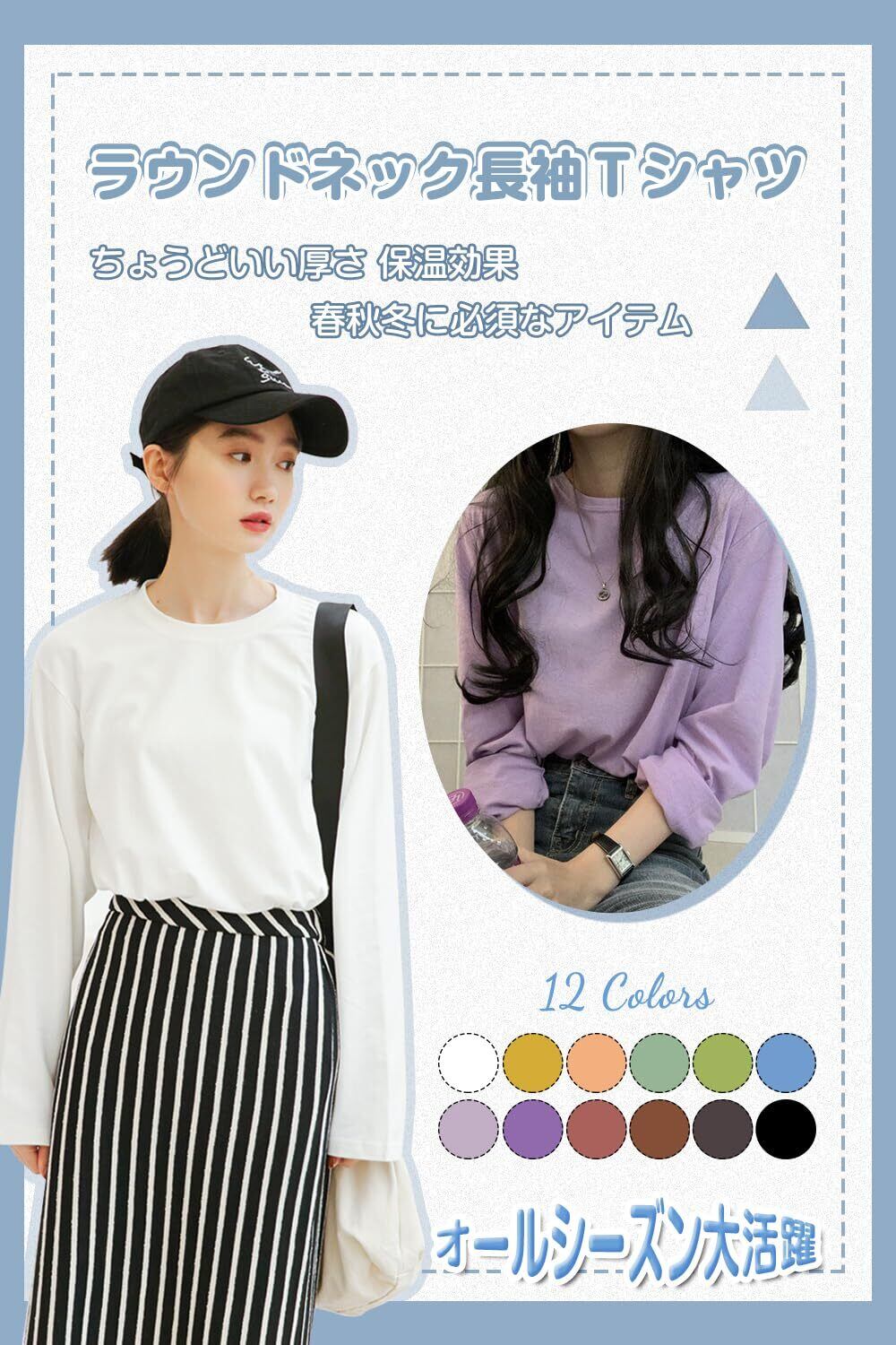 ✨【オールシーズンと着まわしいい】長袖、ちょうどいい厚さ、防寒保温力楽で、涼しい春秋に1枚単独着てもいいし、寒い冬にはジャケットやダウンコートのインナーとしてもオススメします。もちろん猛暑クラーラー効いてる部屋に着るのも良いではありませんか。一年中着用できる万能一着です。