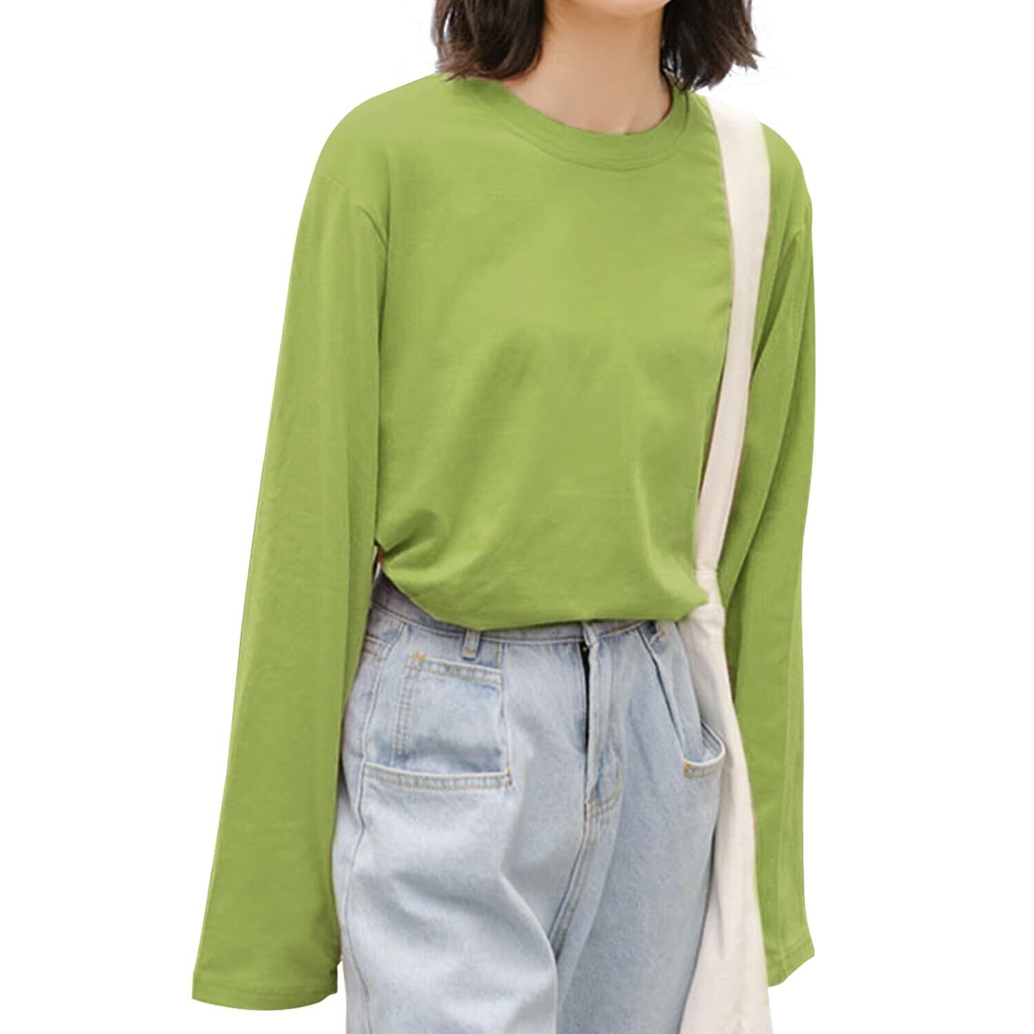 [OMKUY] レディース トップス 長袖tシャツ クルーネック オーバーサイズ 着痩せ カットソー 無地 ロングスリーブ 丸首 重ね着 秋服 インナー ゆったり 部屋着 ビッグシルエット 伸縮性 カジュアル シンプル 白 黒