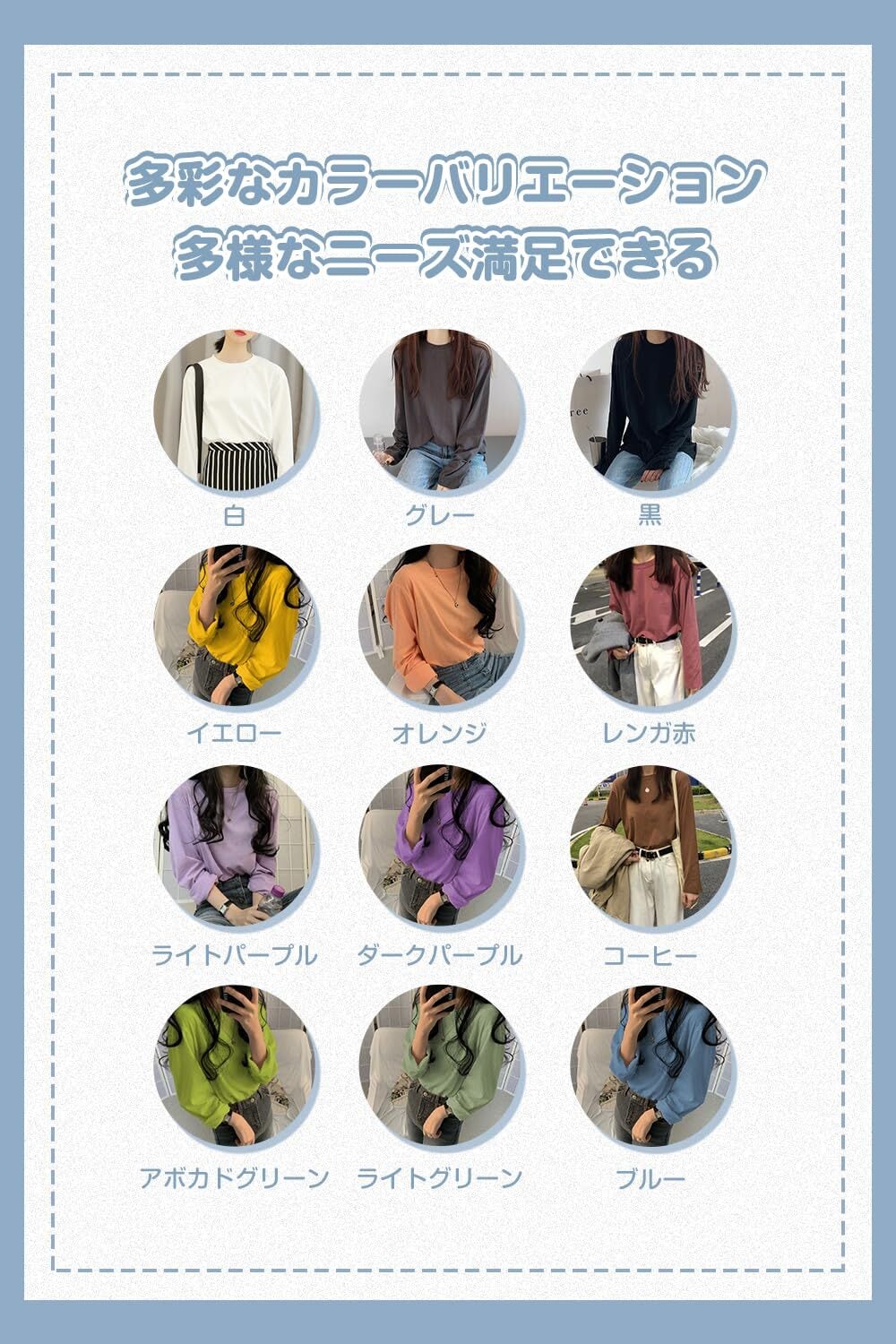 ✨【シンプルで無地だからこそコーデしやすい】シンプルで純色なトップスなので、すっきりとした印象を与え、どんなアイテムとも相性抜群、カジュアルからオフィスまで幅広くコーデできます。合わせるボトムスを選ばず、スカートでもパンツでもおしゃれに着こなせるのはポイントです。通勤通学、旅行、買い物、スポーツ、部屋着など様々なシーンで適用。