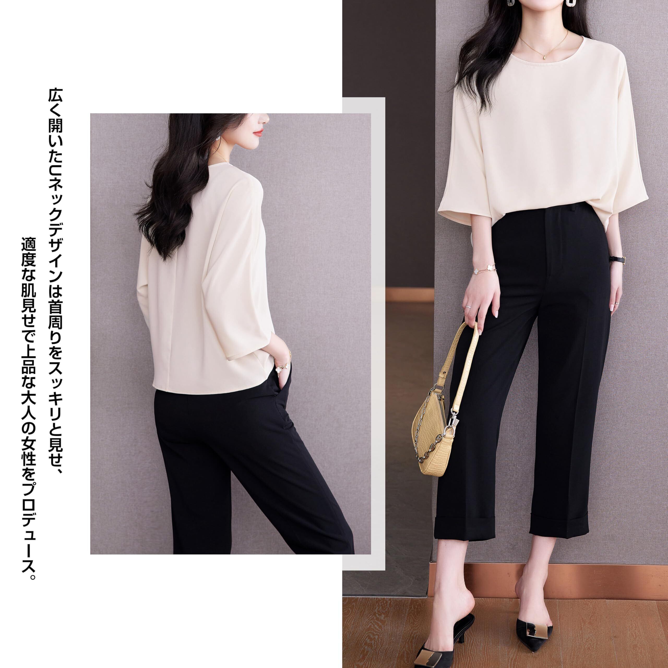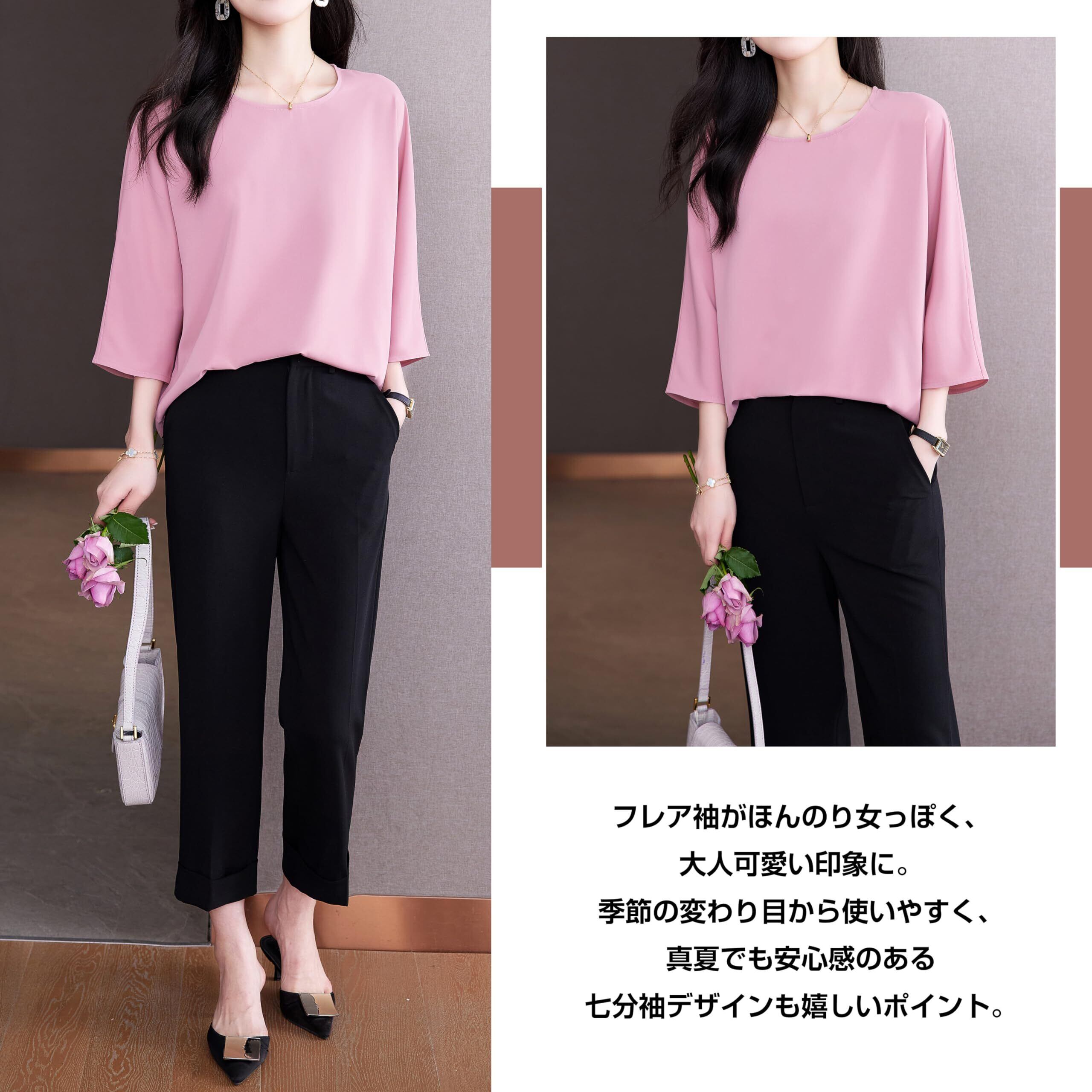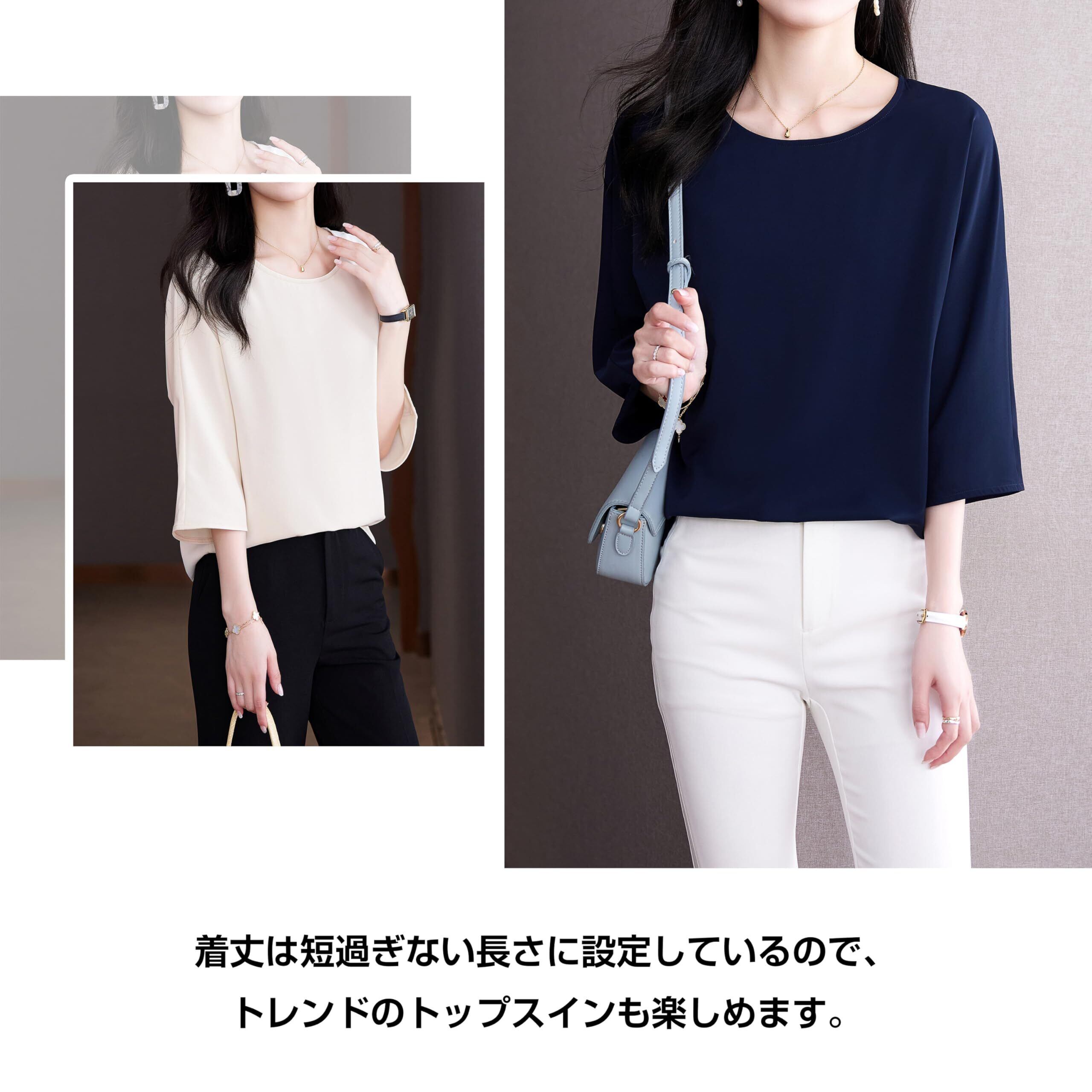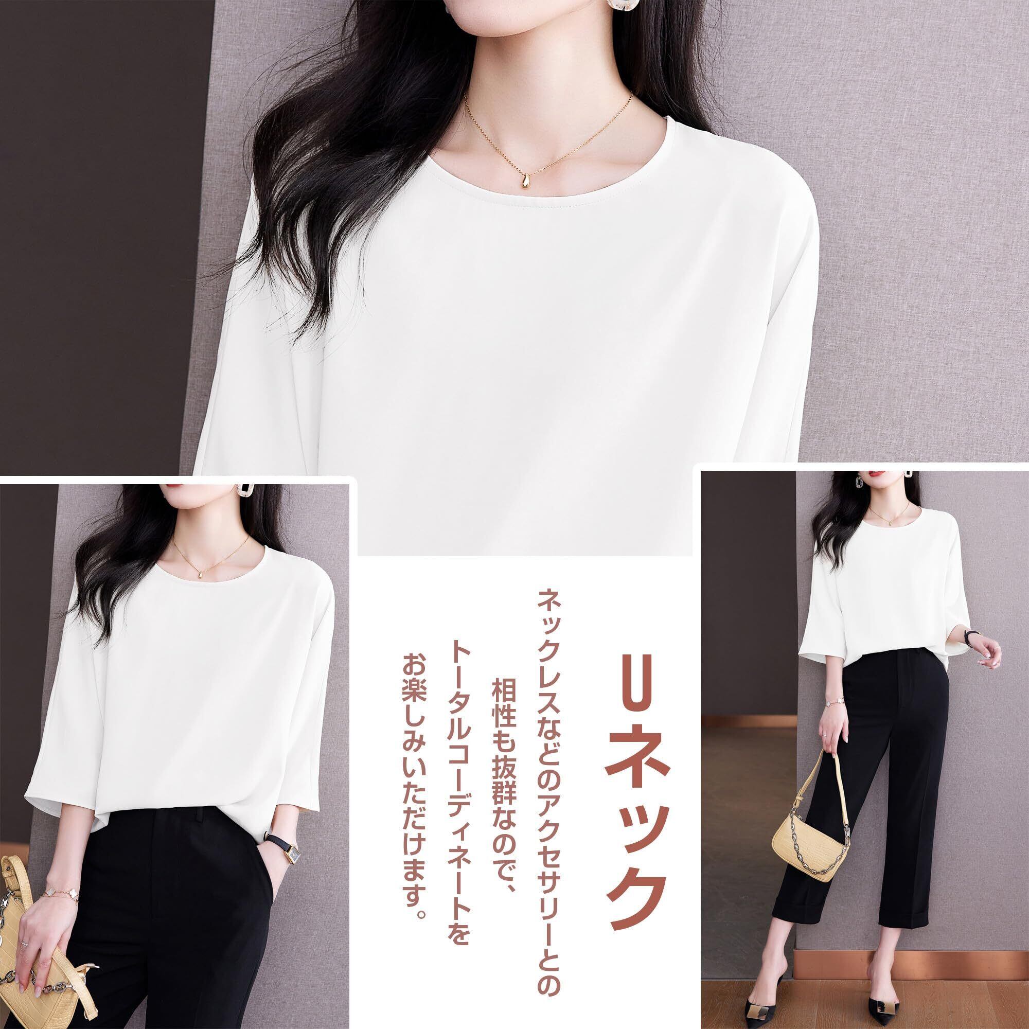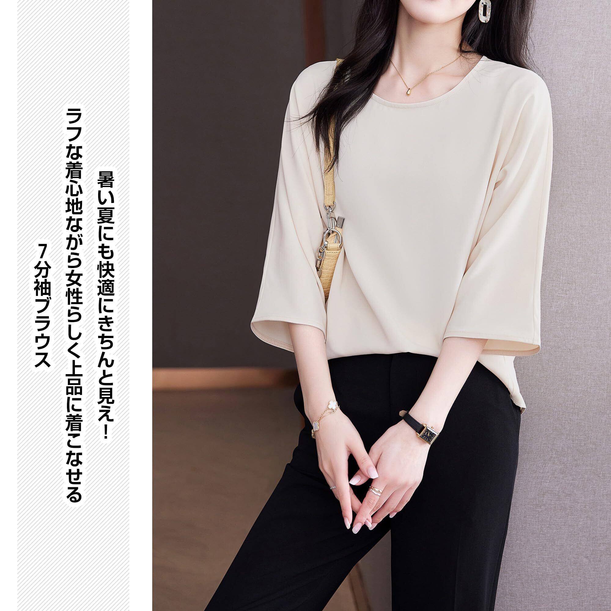 [Bolan Verl] とろみ ブラウス 七分袖 シンプル 薄手 レディース プルオーバー ゆったり 7分袖 白 無地 高見え 春 夏 夏服 秋 フォーマル スーツ インナー オフィス ビジネス