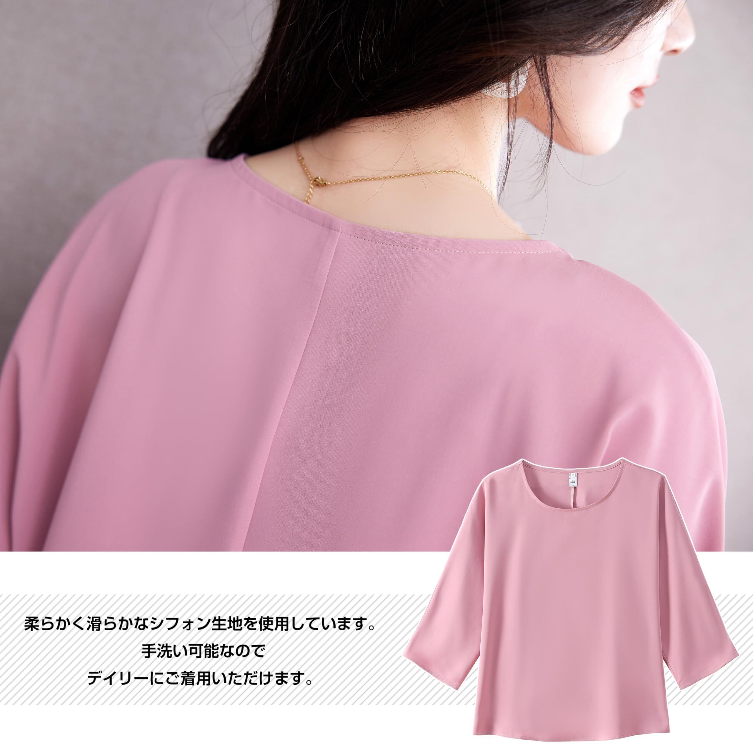 柔らかく滑らかなシフォン生地を使用しています。手洗い可能なのでデイリーにご着用いただけます。着丈は短過ぎない長さに設定しているので、トレンドのトップスインも楽しめます。