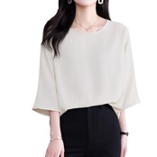 【新春セール】[Bolan Verl] とろみ ブラウス 七分袖 シンプル 薄手 レディース プルオーバー ゆったり 7分袖 白 無地 高見え 春 夏 夏服 秋 フォーマル スーツ インナー オフィス ビジネス | 無意味ステッカー