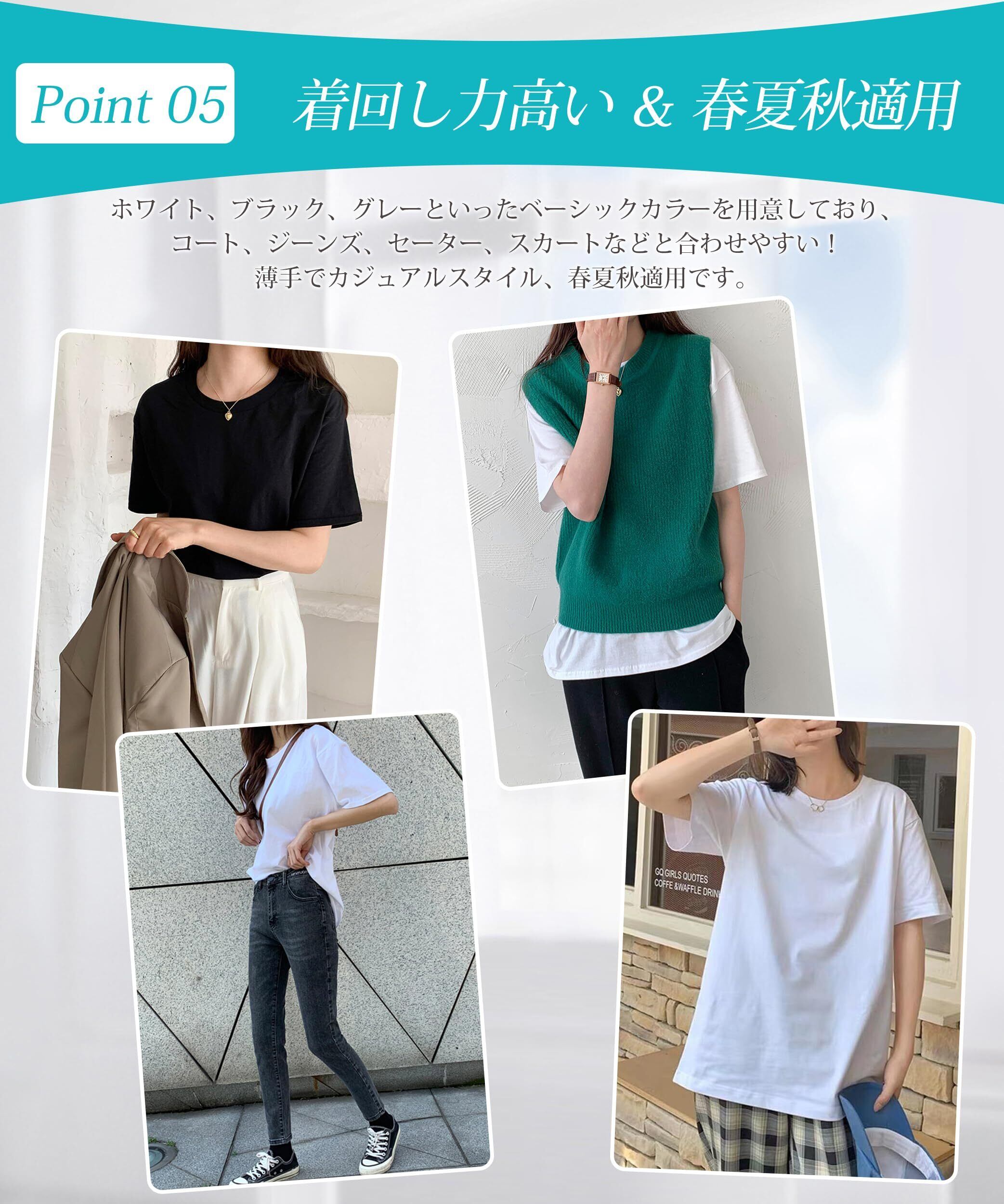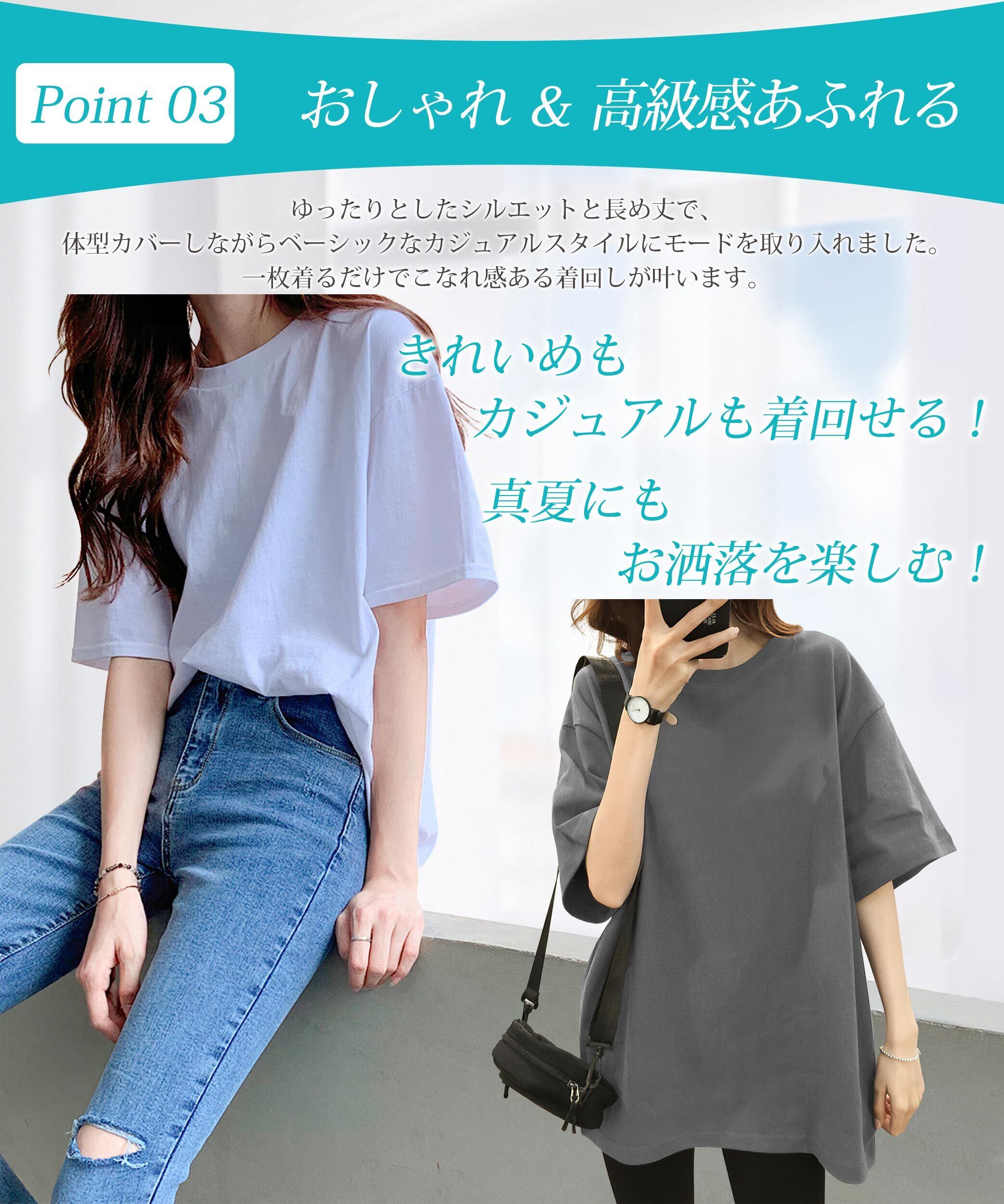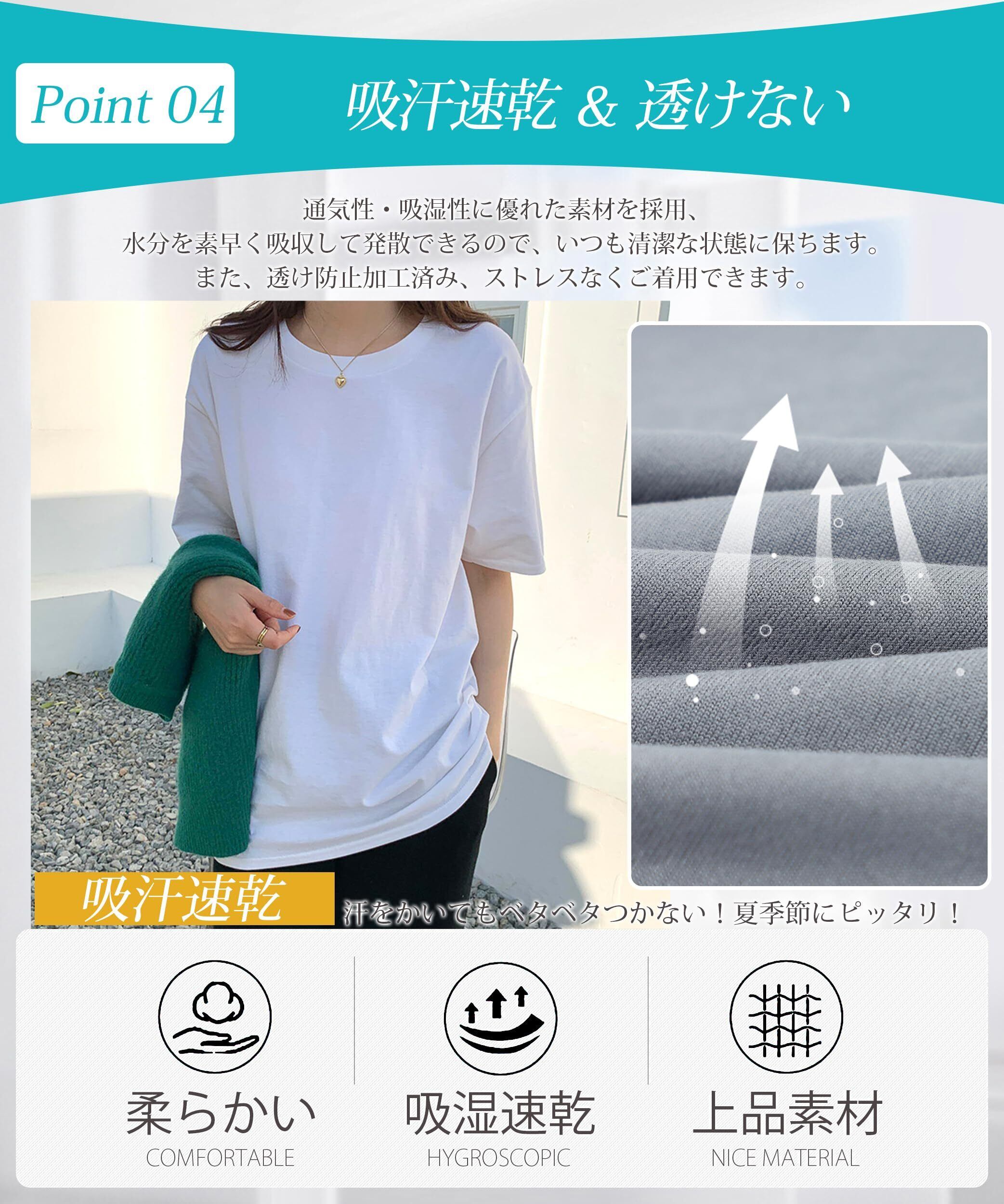 [SLEEPSINERO] 【骨格ストレートの着痩せ!】 tシャツ レディース 半袖 ゆったり 体型カバー ティーシャツ 夏服 大きいサイズ 吸汗速乾 クルーネック 通気 防臭 蒸れない レディーストップス 夏 カットソー ロング 5分袖 おしゃれ