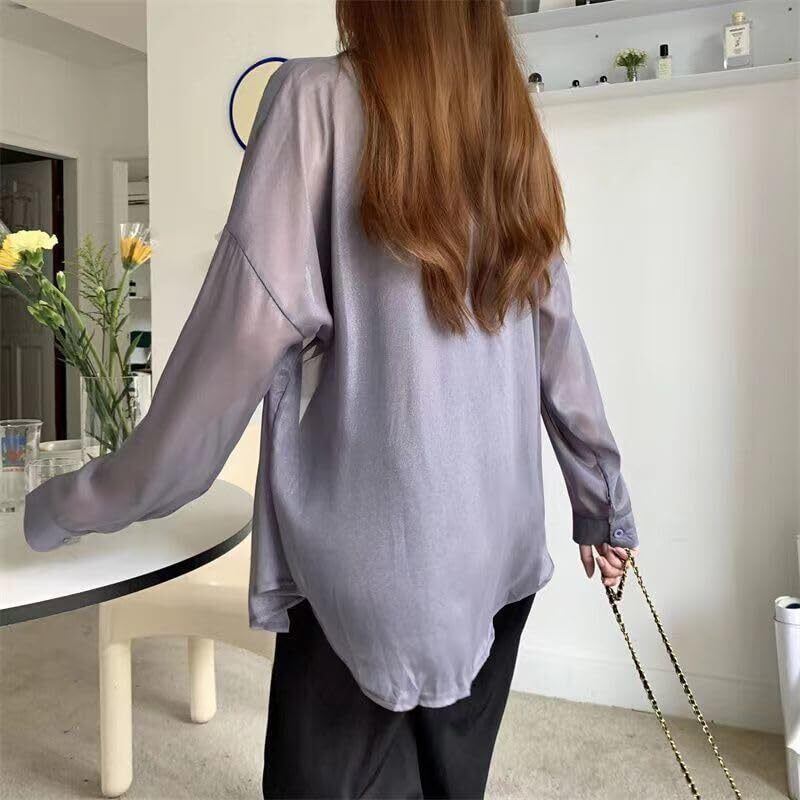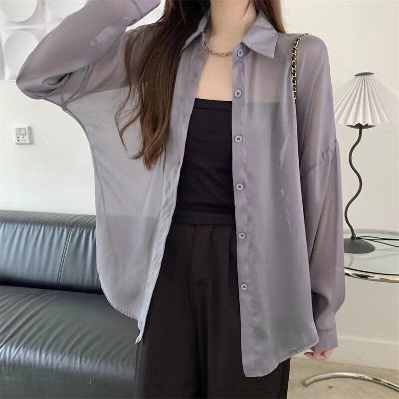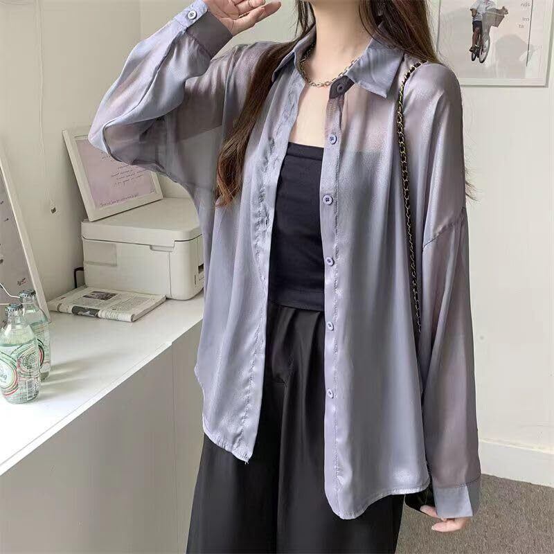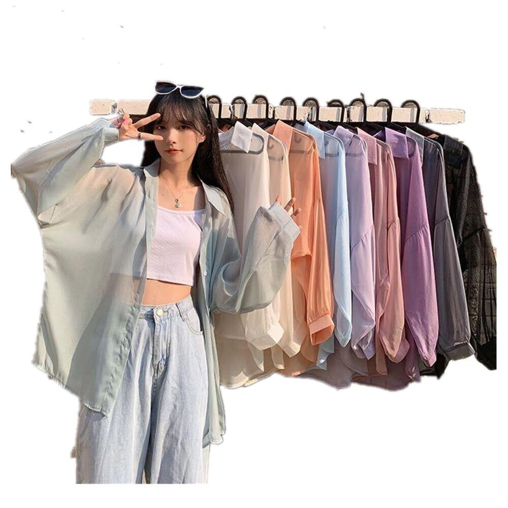 [Xingsas] シアーシャツ 透け感 レディース日焼け止め 上着 長袖 前開き 重ね着 大きいサイズ トレンド 白 カジュアルファッション ゆったり涼しい 夏 春 秋 ライトブルー