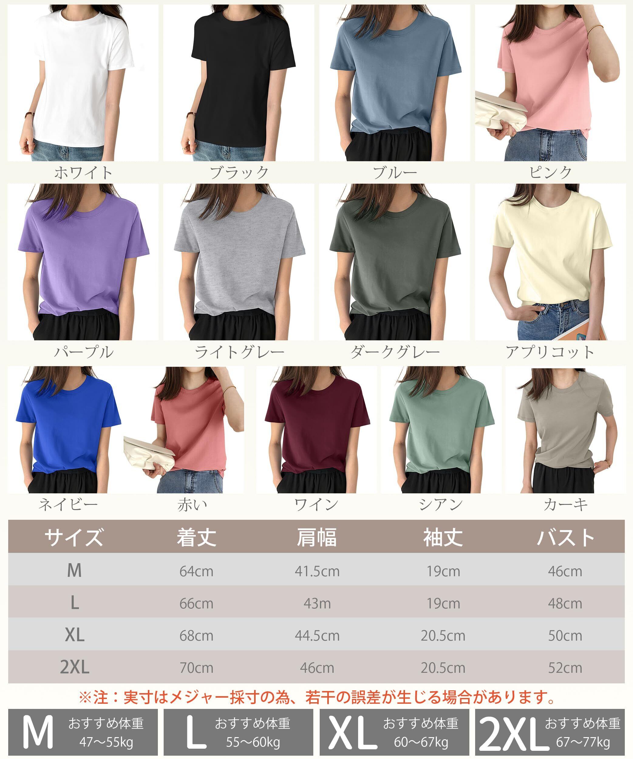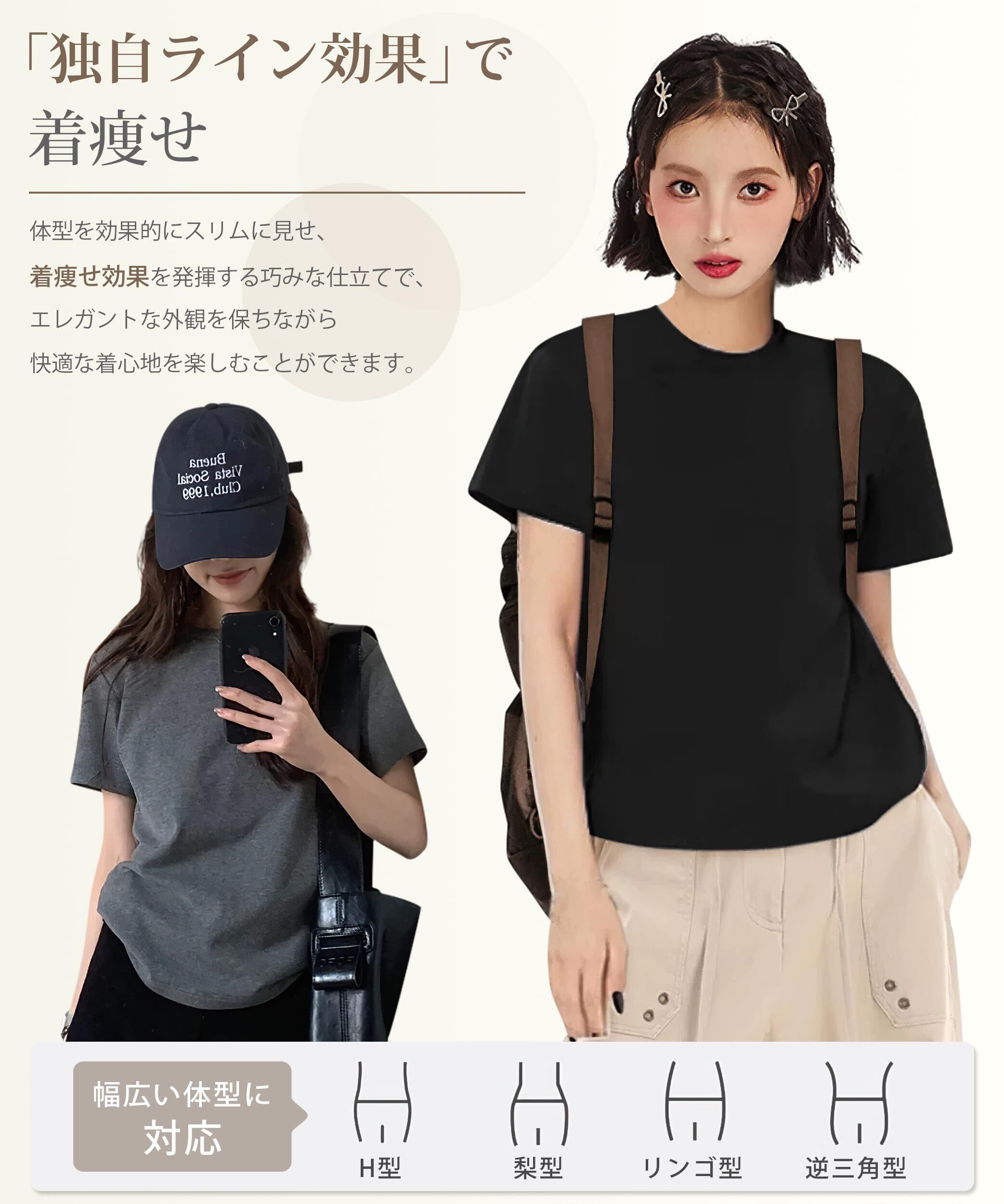 [EAXGO] 【6.35オンス x 綿100】 Tシャツ レディース 半袖 【フィット感の再定義・「独自ライン効果」で着痩せ】ティーシャツ シャツ トップス 重ね着 ゆったり 着回しカ 無地 透け防止 体型カバー おしゃれ