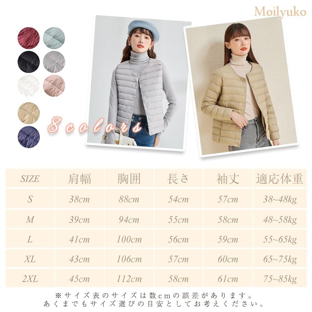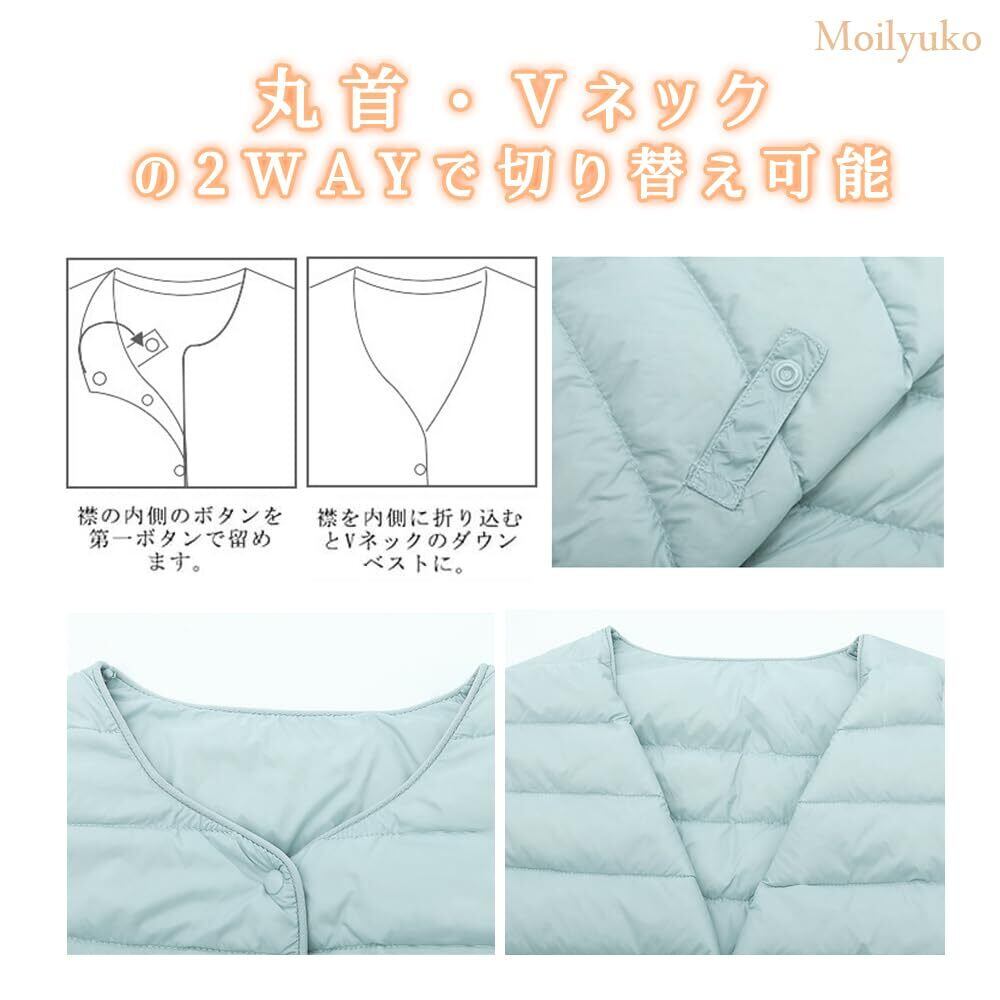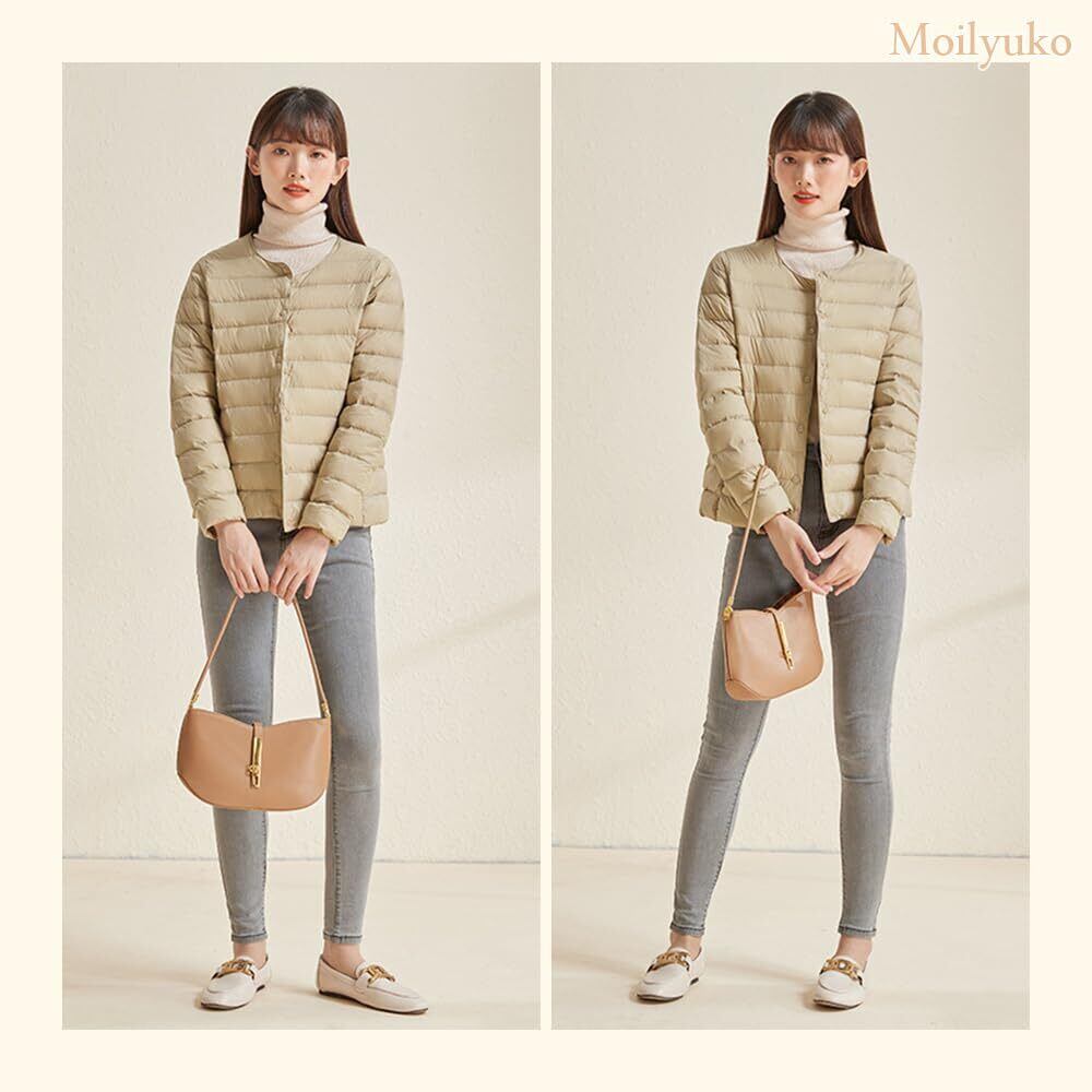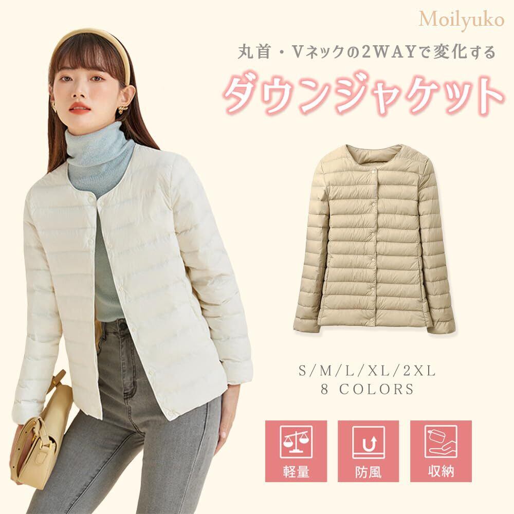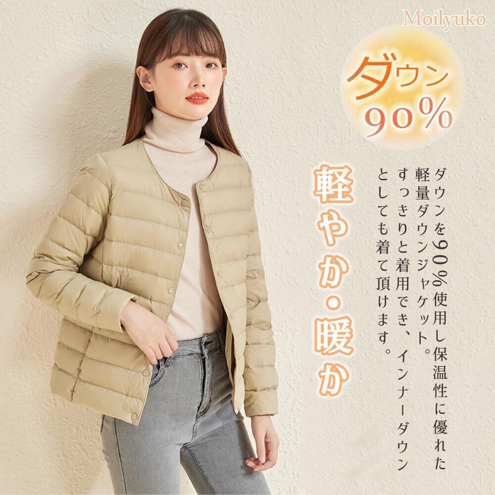 Moilyuko ウルトラライト ダウンジャケット レディース ダウン ノーカラー インナージャケット 軽量 暖かい 防寒 秋冬 収納袋ポーチ付き Mo51