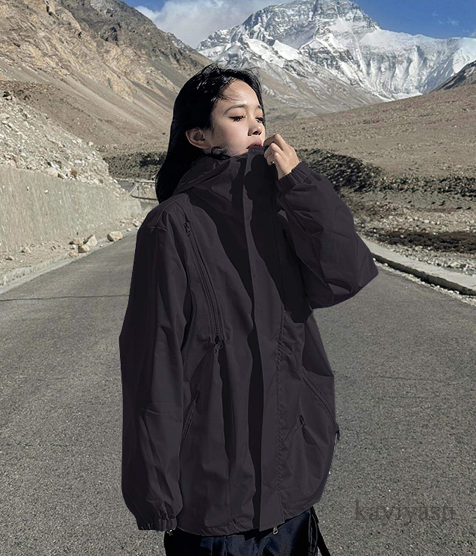 [Kayiyasu] ウインドブレーカー レディース マウンテンパーカー マウンテン ジャケット スタンドカラー 撥水 防風 防寒 秋 冬 カジュアル S-2XL