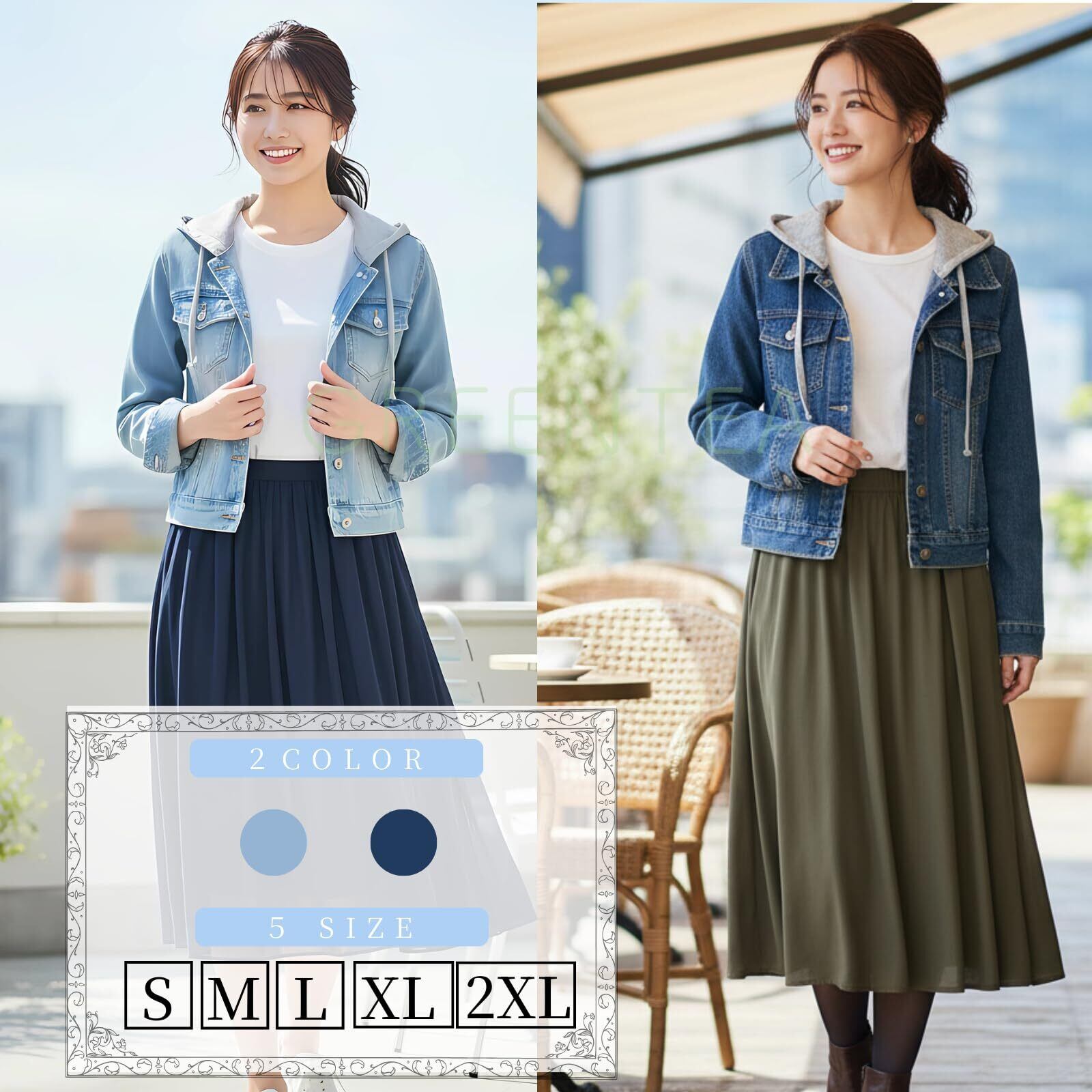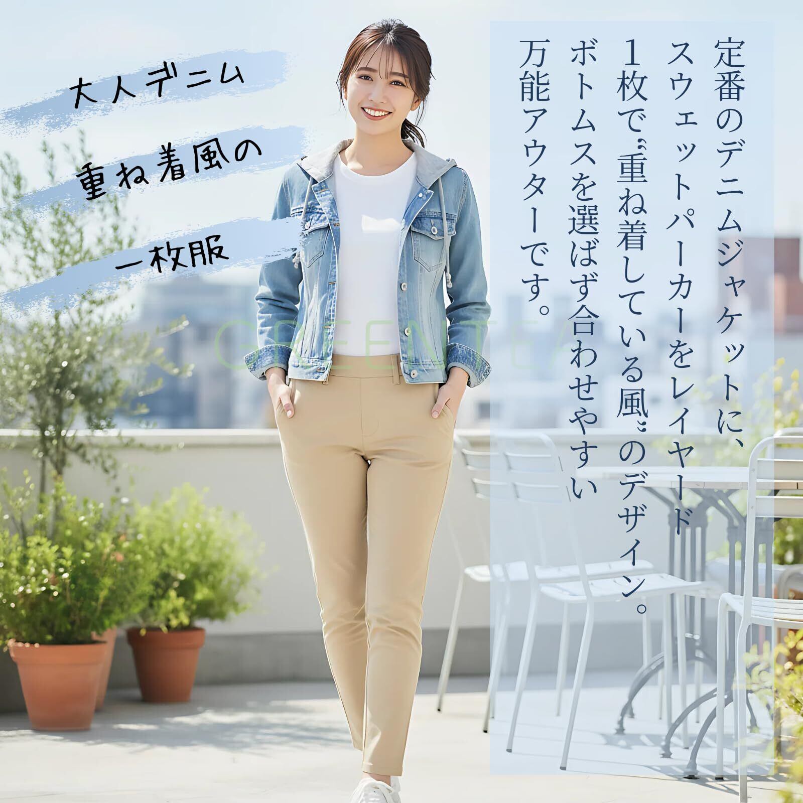 [グリーンティー] デニムジャケット ジージャン フード付き カジュアル レディース S 〜 XXL