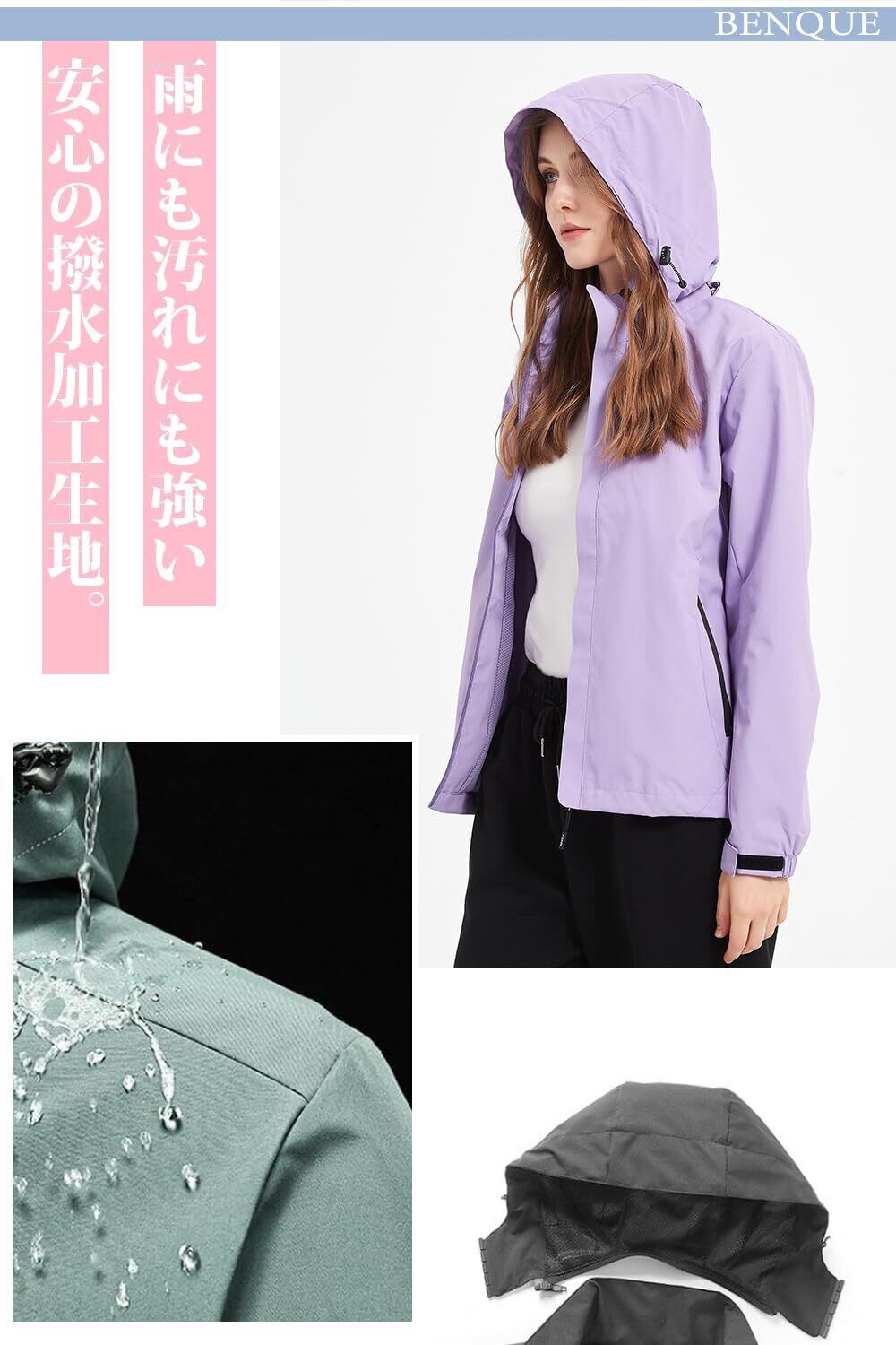[ベンケ] 【軽くて、風を通さない】 アウトドアジャケット レディース マウンテンパーカー 春秋 登山 釣り バイク 防風 撥水 [耐水圧 2000mm]