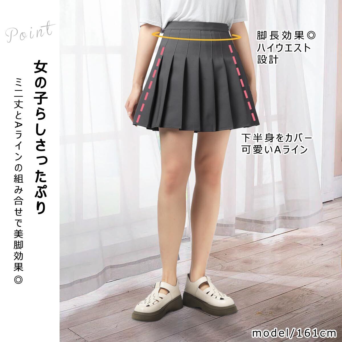 【デザイン】裾が程よく広がるデザインで、ウエスト周りのシルエットが綺麗に見えます!脚をすっきりときれいにみせてくれるプリーツスカート。歩くたびにふわっと揺れるプリーツスカートは女の子らしさたっぷり。