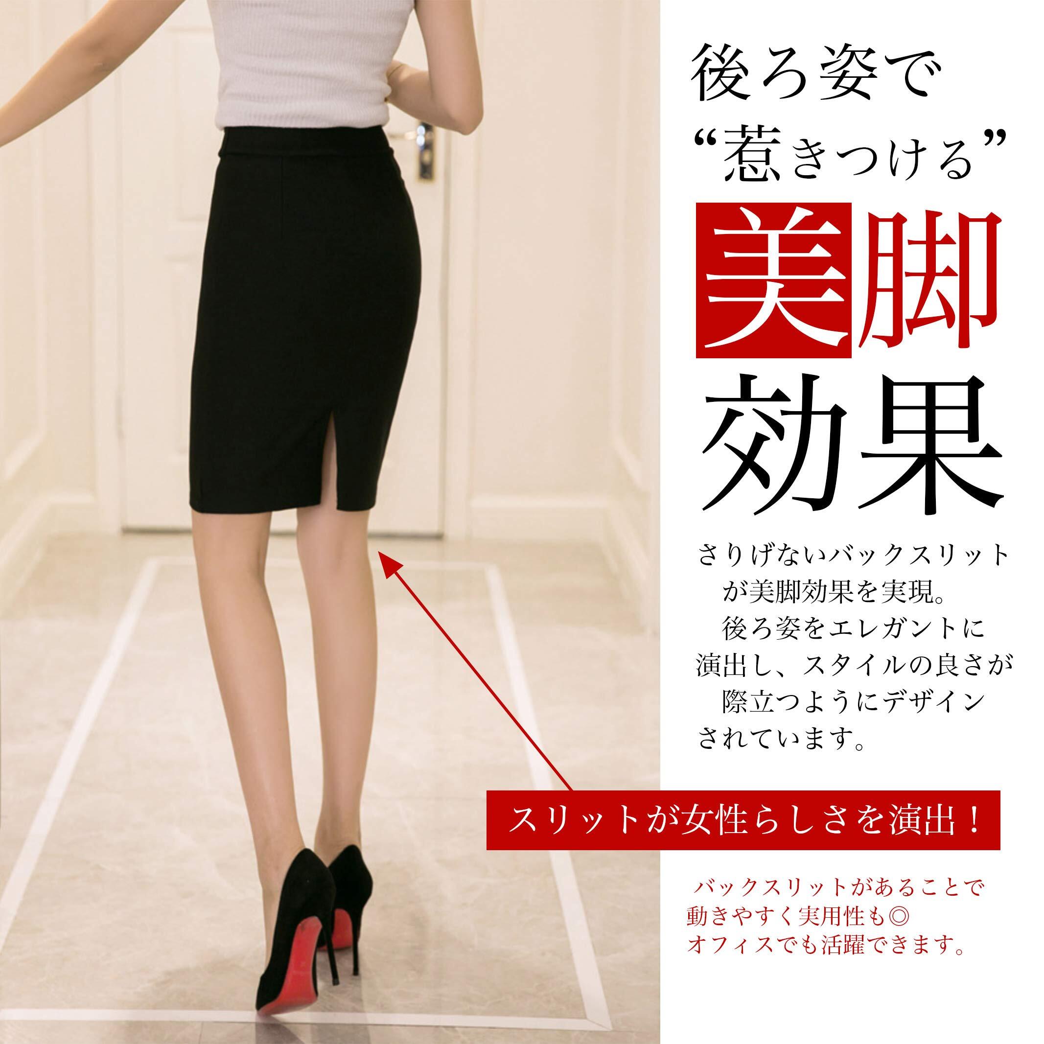 [ユニベイズ] ミニ〜ロング タイトスカート レディース 黒 ブラック スリット OL オフィス スカート ストレッチ