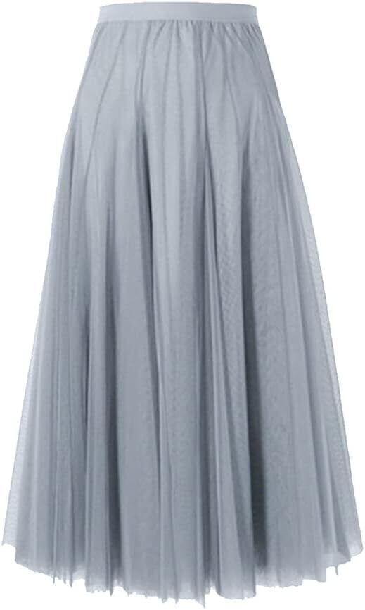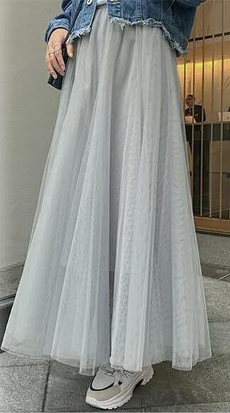 [Bobo & Hanhan] レディース ロング チュールスカート マキシ丈 おしゃれ ボトムス 体型カバー 大人 可愛い エレガント 裏地付き ウエストゴム 通勤 普段着